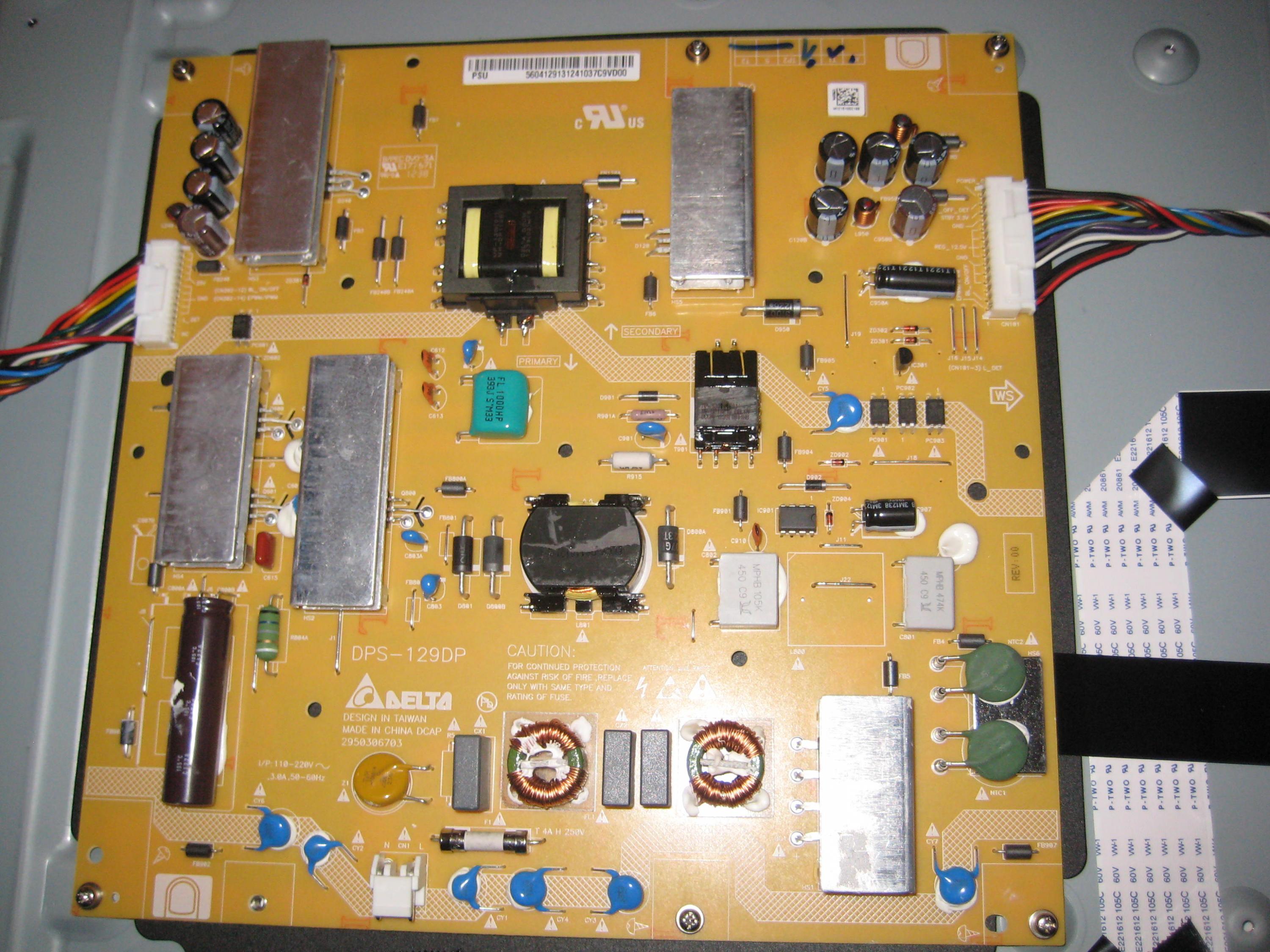 As the title says, I have a vizio m470vse, with a dps-129dp power supply. I received it with a blown fuse. I tested the bridge (out of circuit) and it was ok (I think, but please tell me if I am wrong). The positive symbol is on the left and the negative is on the right. With the DMM set to 20m ohms and the negative lead on the positive (left) pin...positive lead to the first AC reads 2.10, 2nd ac reads 2.31, and the negative (right pin) reads 3.57. With the DMM in diode mode (reading in the same order and still the negative lead on the positive pin) I get .65, .653, and 1.545. No readings in the other direction.