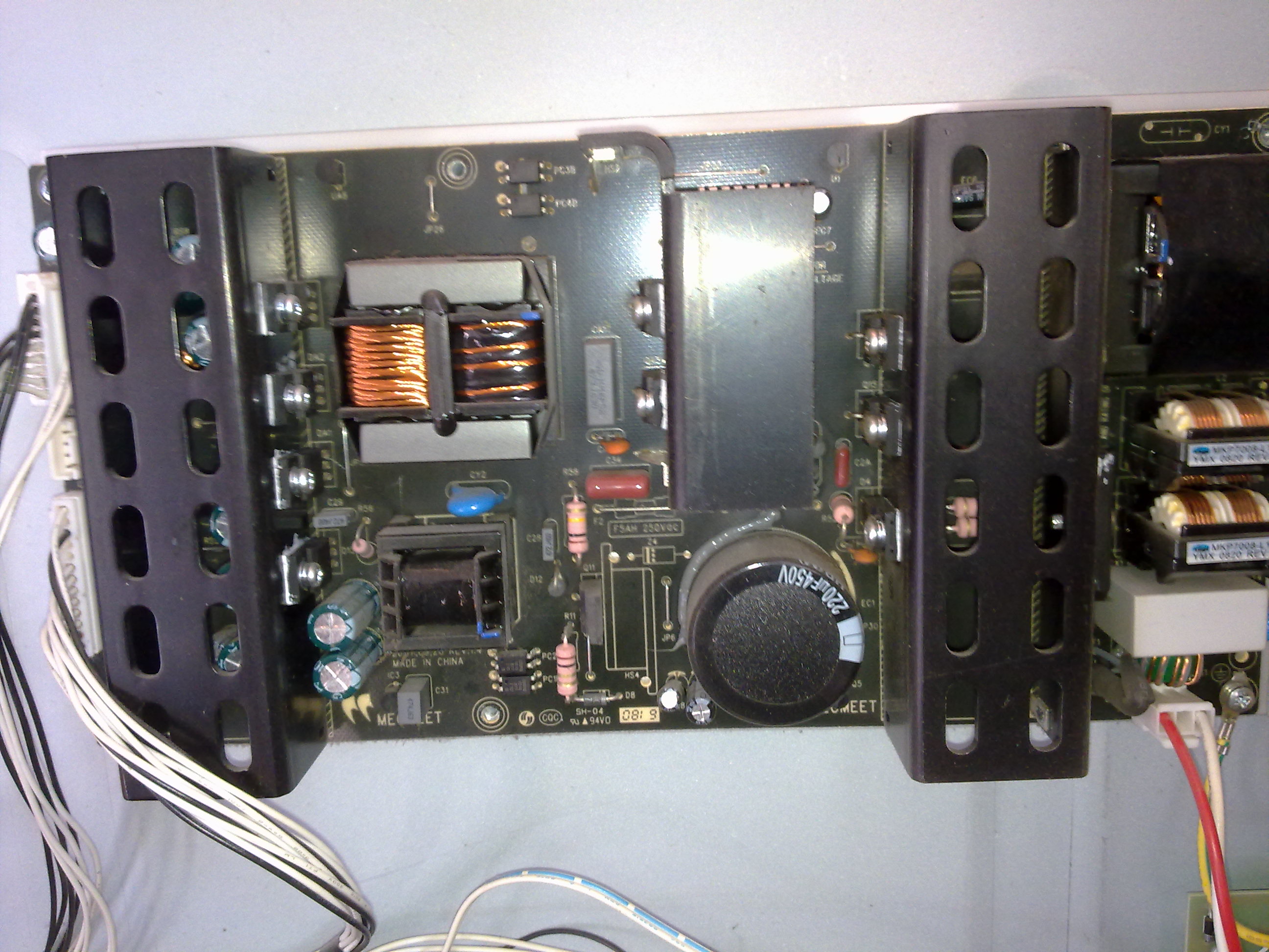 The main is one of those nasty boards that seem to eat eeproms for breakfast and the psu is a megmeet MLT range. (Although crap the caps under the shield look ok)