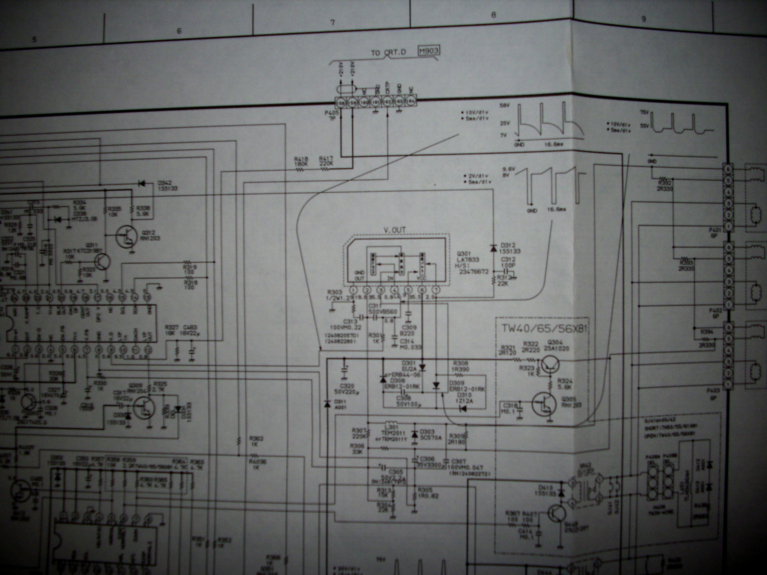 Attached from schematic top view of the Deflection board,hard for me remember the chassis layout but I'm thinking the deflection board will be in the center of that chassis it will also be board with board number (PB8920A) marked in black somewhere on the board,also this board will have the HVT (High Voltage Transformer) on this board it's large black device will have maybe 3/4 wires exiting top,If you still have trouble finding take me picture inside top view of back TV and I'll circle the board and repost your imageRon Driver,BSEE,CET,ISCET,NESDAComment
