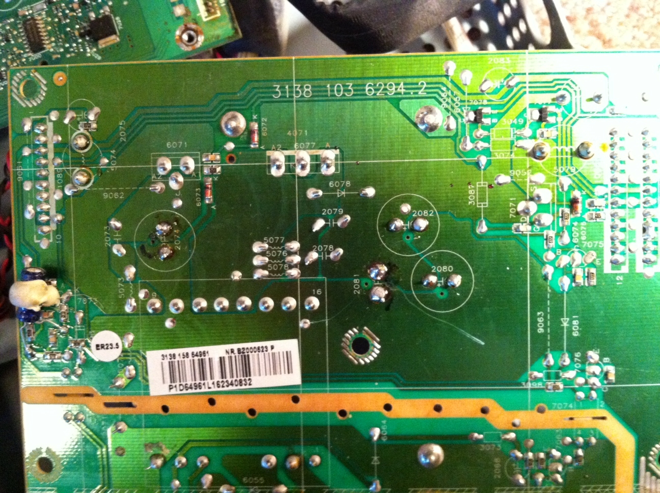 The pictures are of the under side of the p/s with part number. One picture show 1200/35v and 2200/25v written on the chassis but I couldn't find a 1220ufd 35v cap on the board.