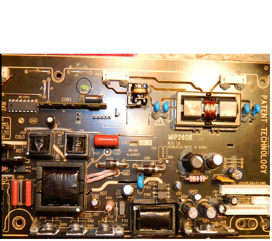 When the screen turns off I thought that the problem is a power supply, I checked it and saw two of the 1000uf swollen capacitors, I replaced them with the hope that it will solve the problem.