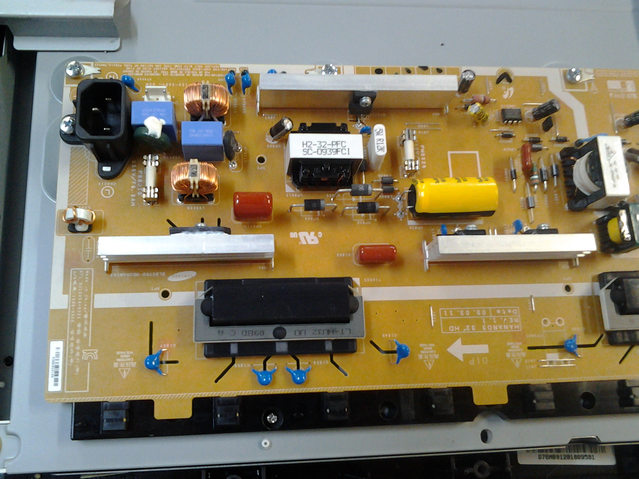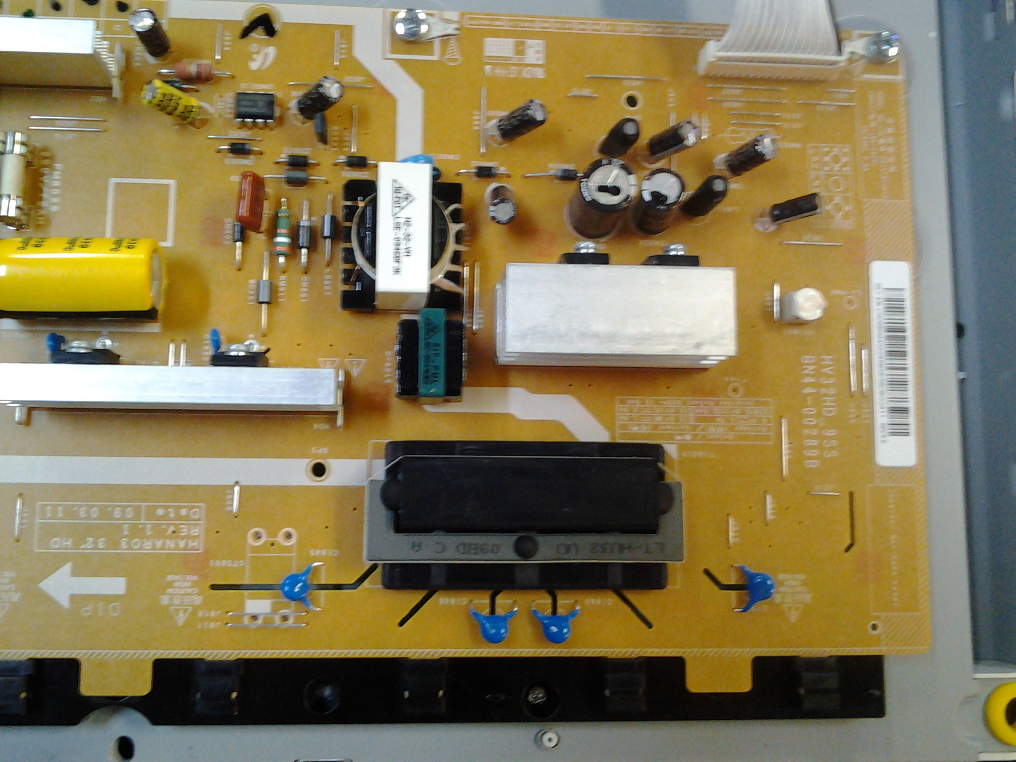 Hi I have a Samsung LN32B360C5D tv, No power up and no Power LED, only the optical audio out lights up. I have checked all Diodes and caps with a fluke meter and an Atlas ESR Meter, they seem to be fine. I checked the voltages on IC UM801 I'm getting around 400V DC, same as filter cap. Getting some voltage on SCN102 (on the video board), they seem to go up and down but never a solid voltage. Any advice will be greatly appreciated, I have considerable experience with Pinball's and other electronics, with TV's coming in last with the least experience, but I'm willing to learn. Thanks guys!