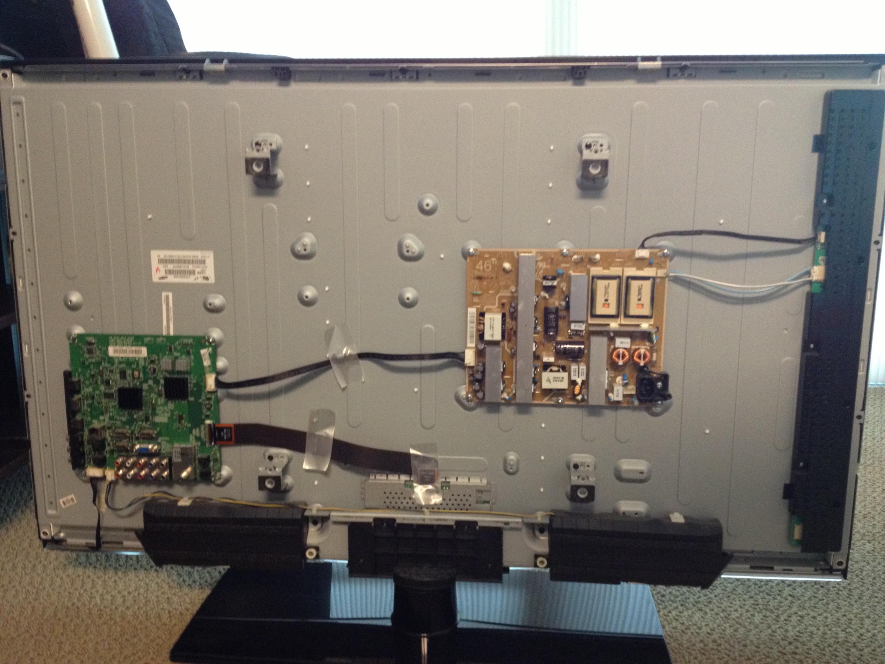 This is my first post, but long term lurker on the form learning as much as possible about these TV's. I was given this TV as due to a power outage of constant On/off of power to TV. The TV originally would just click on and off (Typical Reboot Cycle). I opened the back of the TV, and troubleshooted by taking the 96 pin LVDS off one at a time to see if I had a picture on either side. I finally fixed the reboot cycle by finding the error on the left side of the screen off connector CN 1301, and the TV would stay on. Further troubleshooting led me to the driver boards where...5 Photos - Loading...