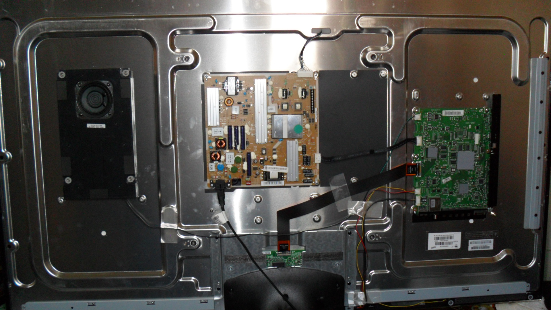 Also removed connections to panel, speakers and remote but no luck. One strange thing is that even with the LED power supply working, backlight LED do not turn on...