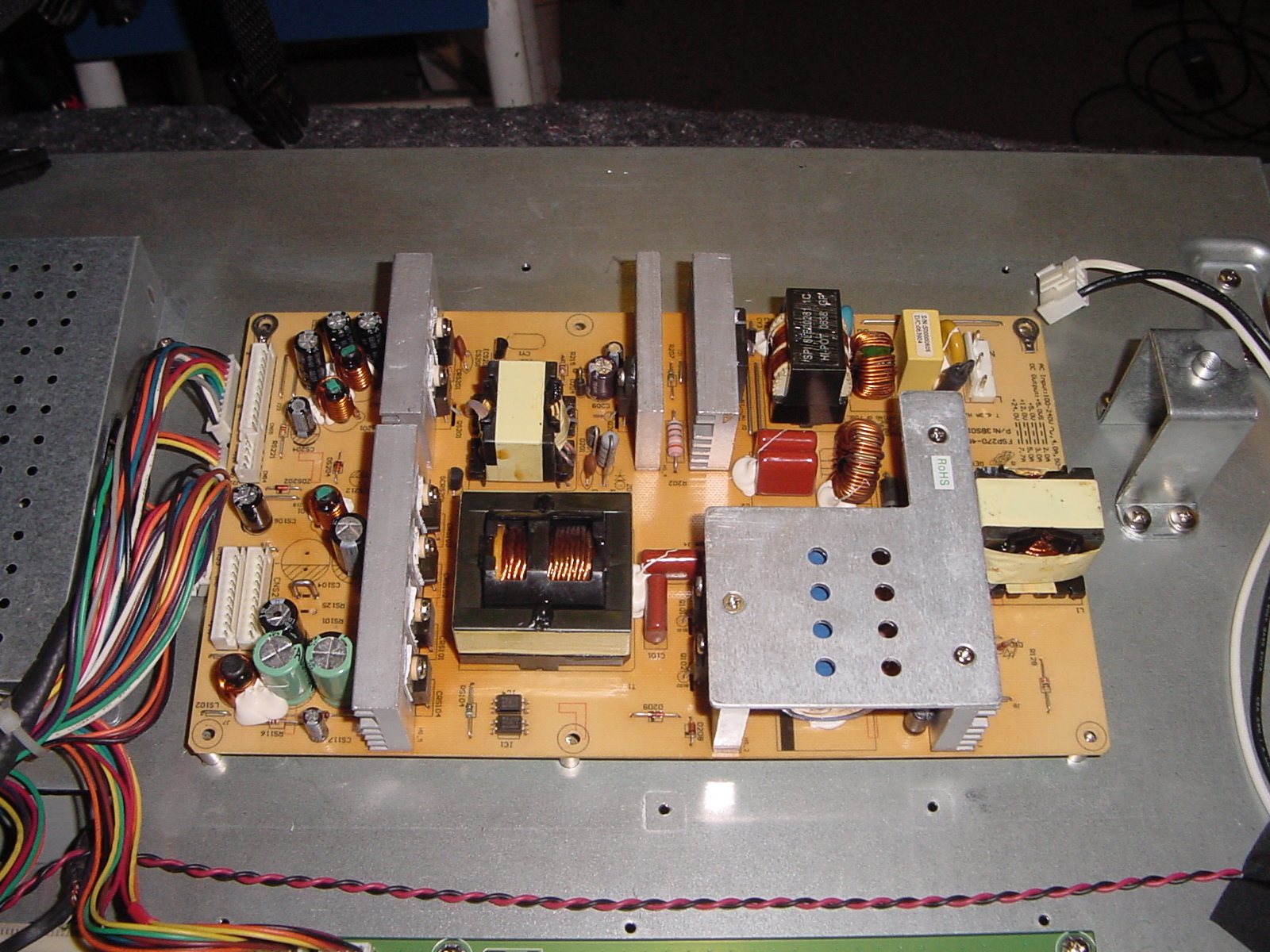 The one cap in the 24vdc power supply was replaced by 3 general purpose 85c caps in parallel (470 + 100 + 100).