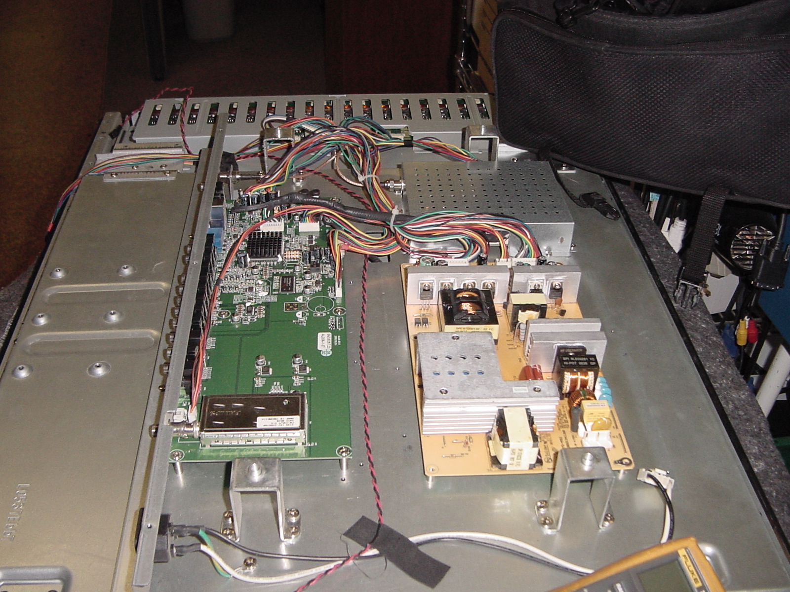 We receive this TV for recycle today, we were told that the TV was repair by DIY but could not get it to work, the Blue power LED is still blinking.