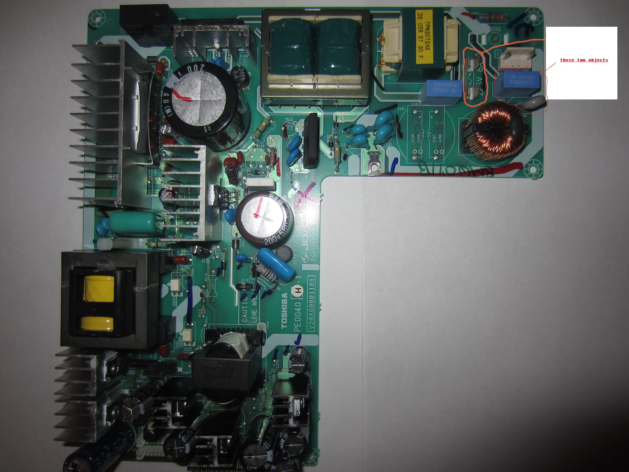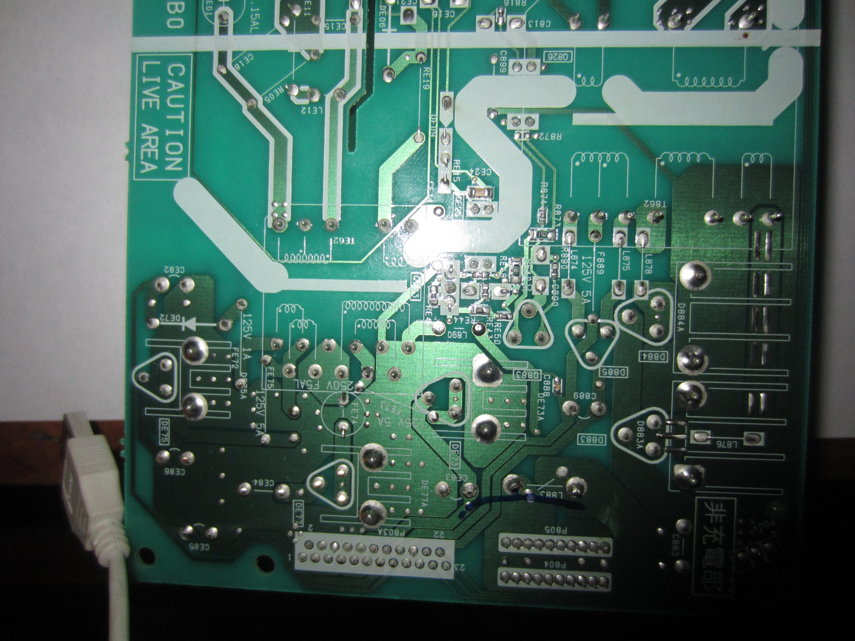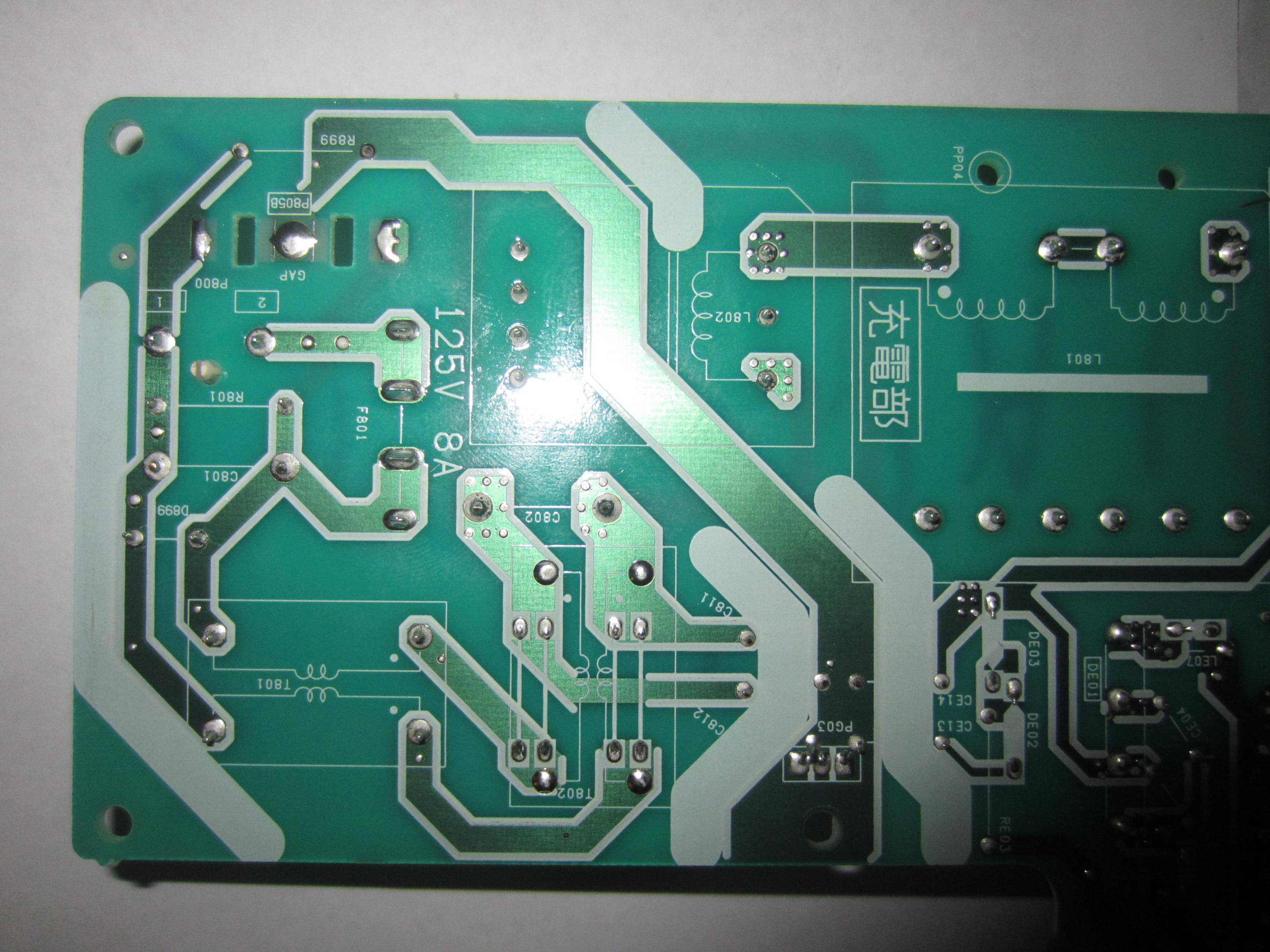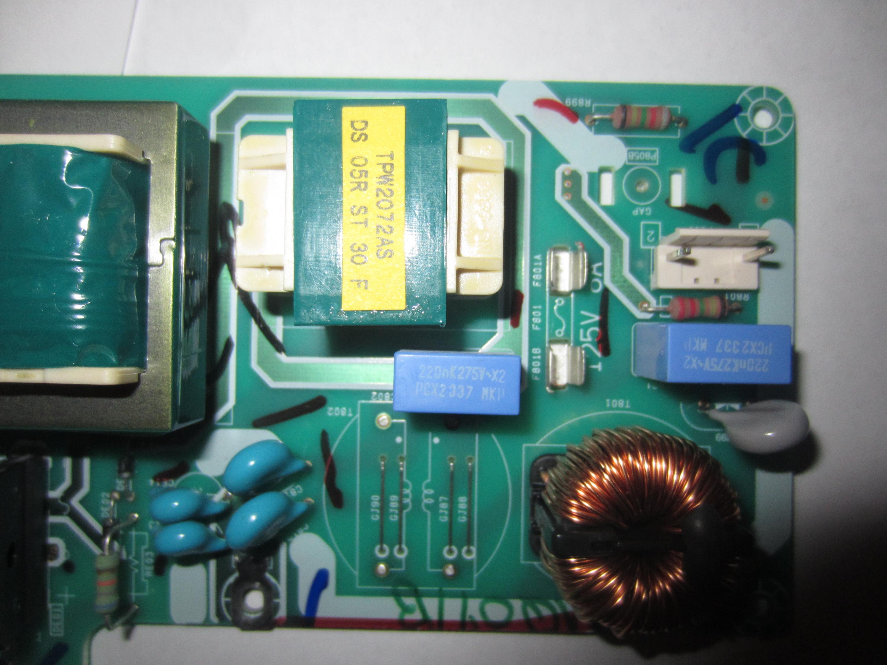 Can we see the good clear pictures of the bottom side of the board, the Blue component is the safety cap, the Gray component may also be a Ceramic safety cap or Thermister for in-rush current limiter.