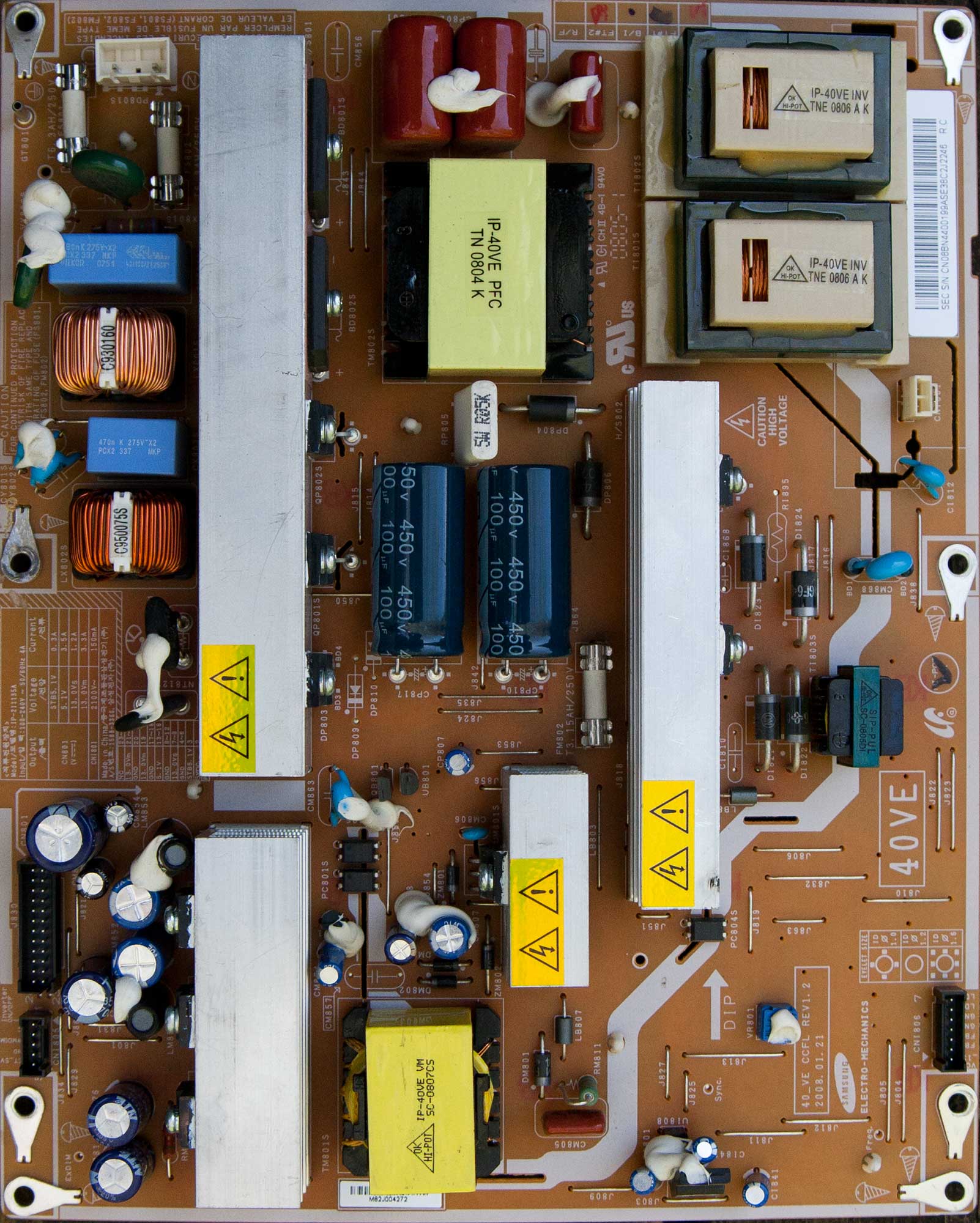 Hello I got this tv today, It has already been worked over by someone. They replaced 4 caps in the primary (nec replacements read .02 esr) all the other larger caps read .01, there are three small caps (about 1uf) two read .33 and one is .46 Im not sure if this means they are bad or not, still trying to get used to the blue esr meter. I get standby power (5v) chime when I push power on, however no light below the logo like my other samsung.