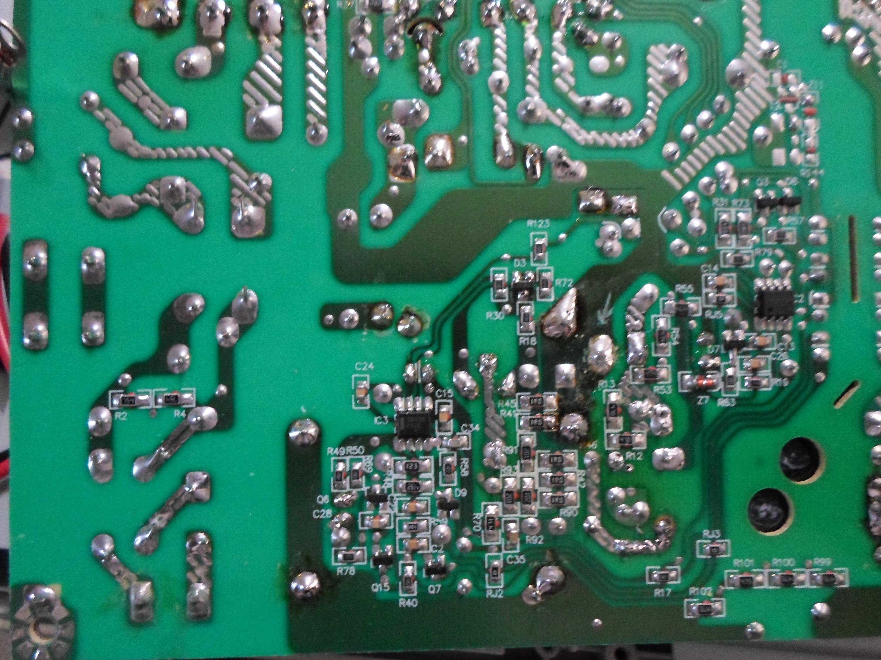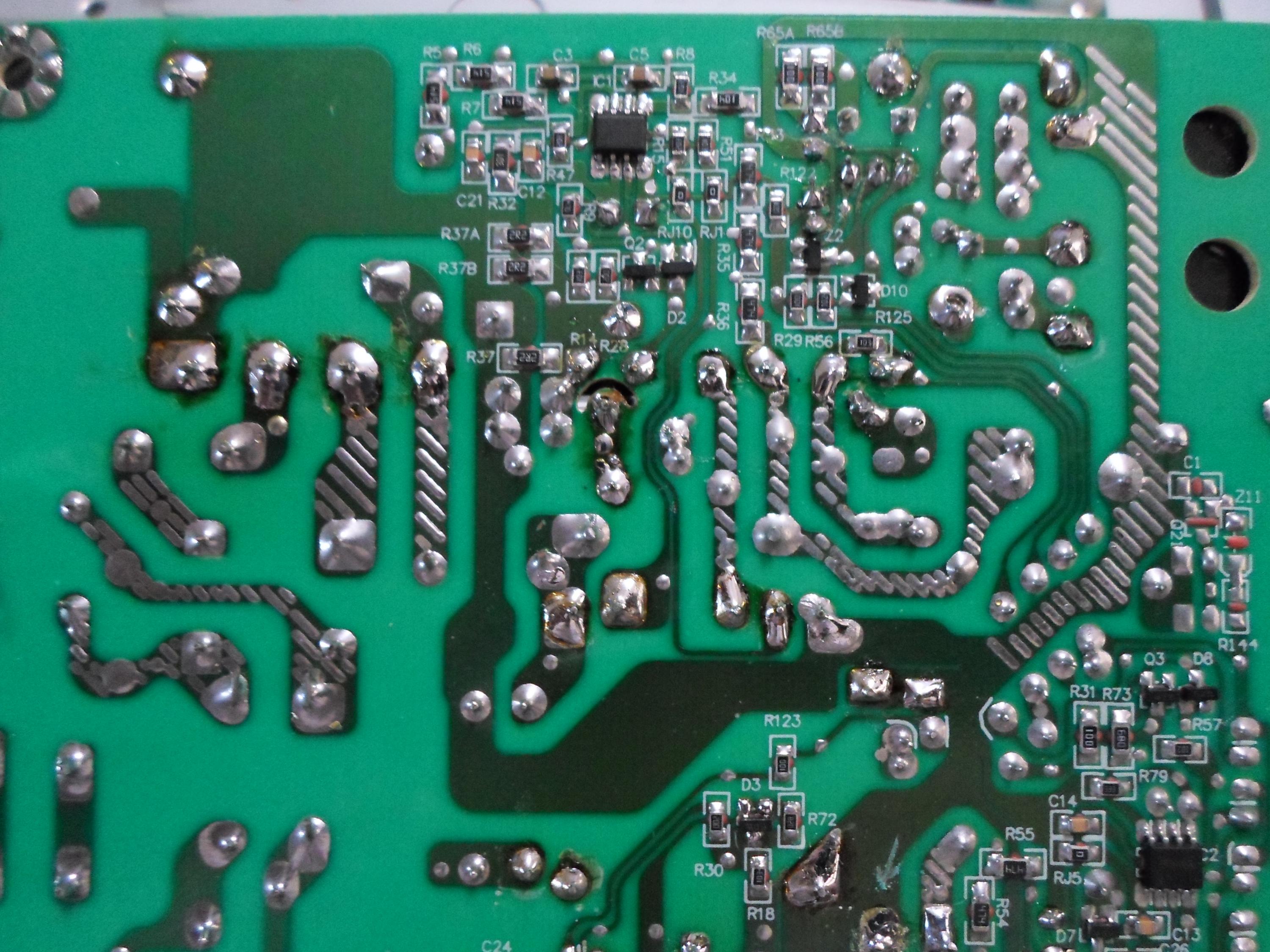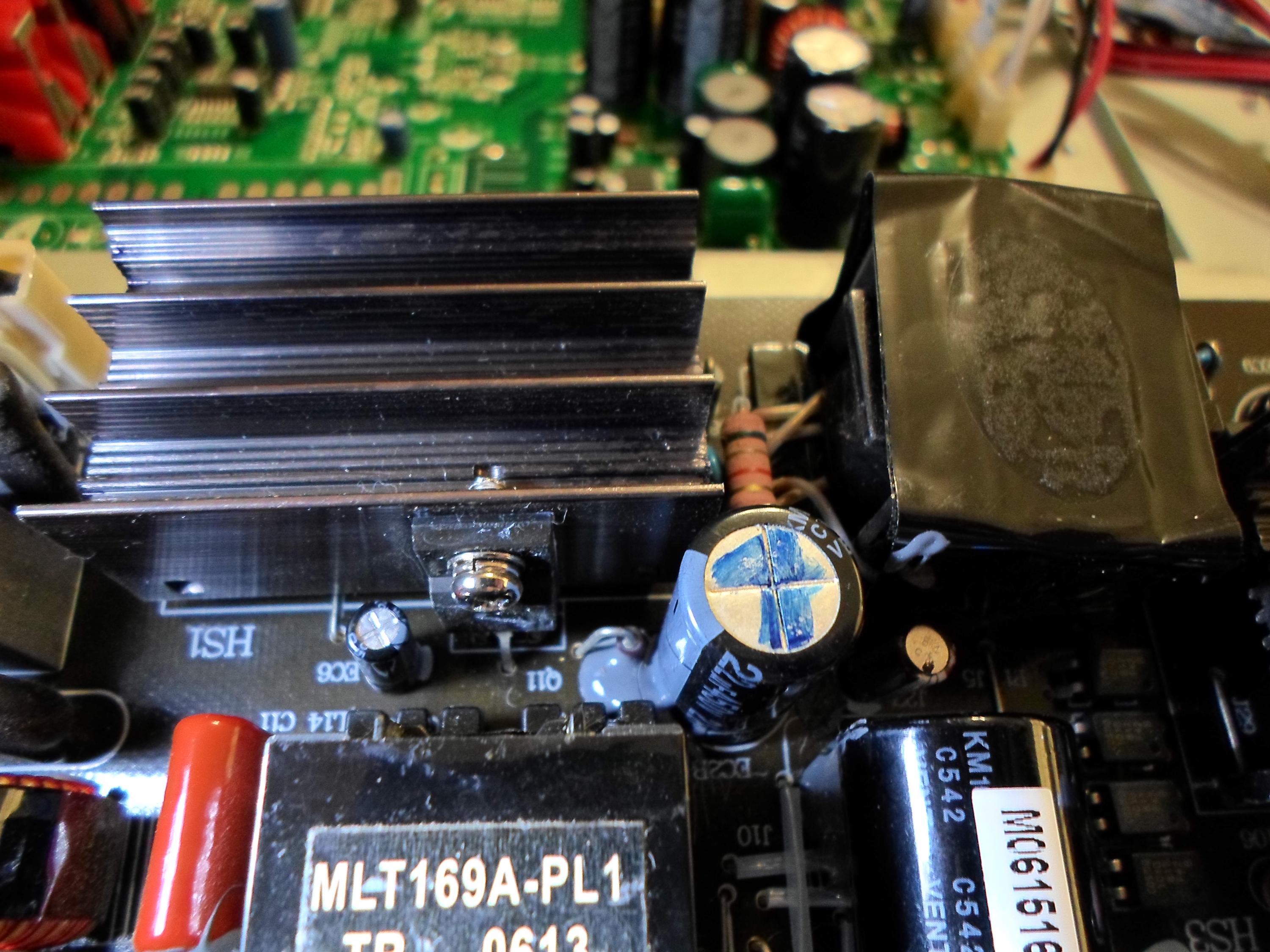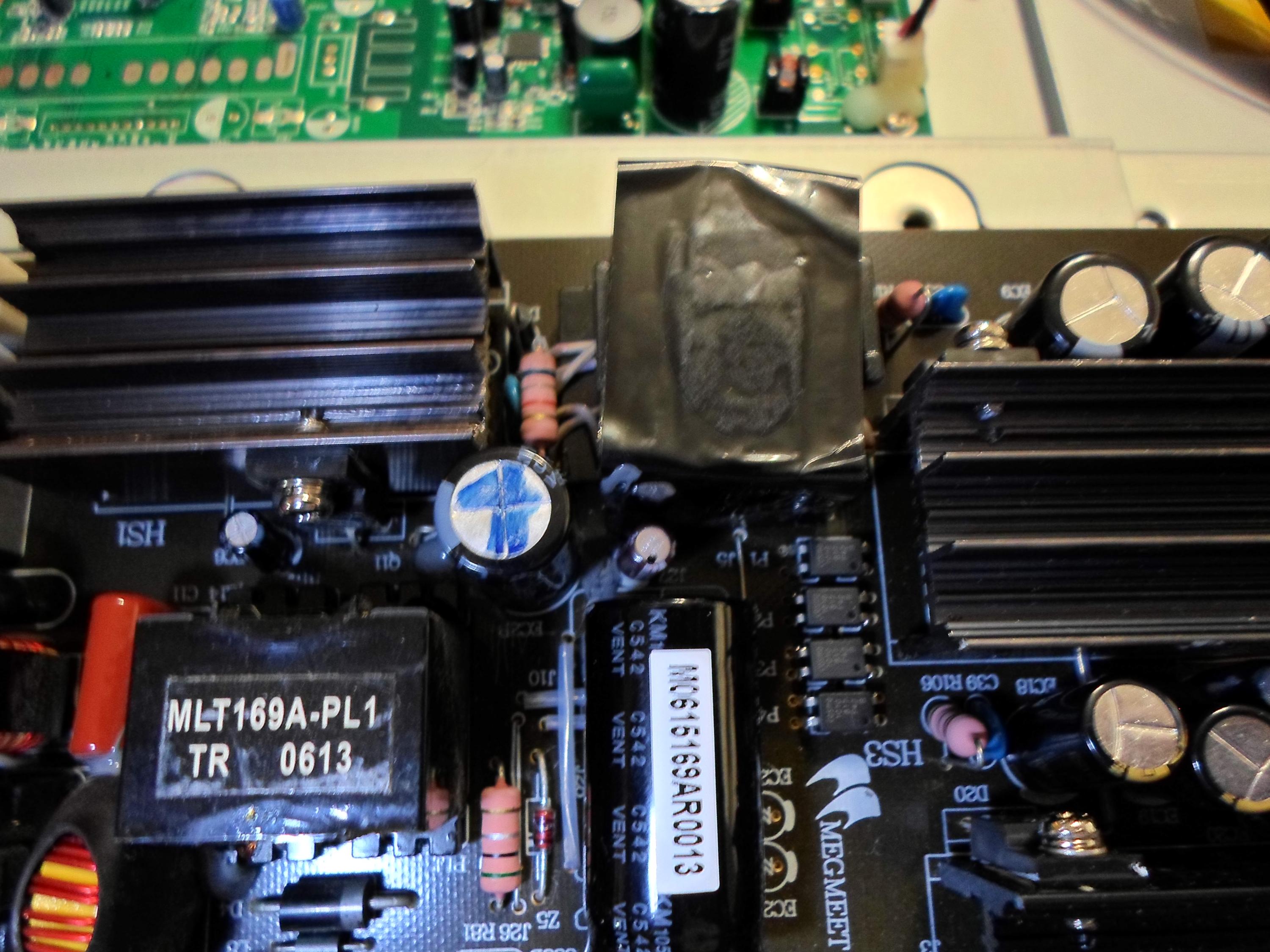 I've reflowed the transformer pins and everything else around.. I didn't repalce all the caps but did check them, including the 22uF 450V with the blue mark on top, which tests good.