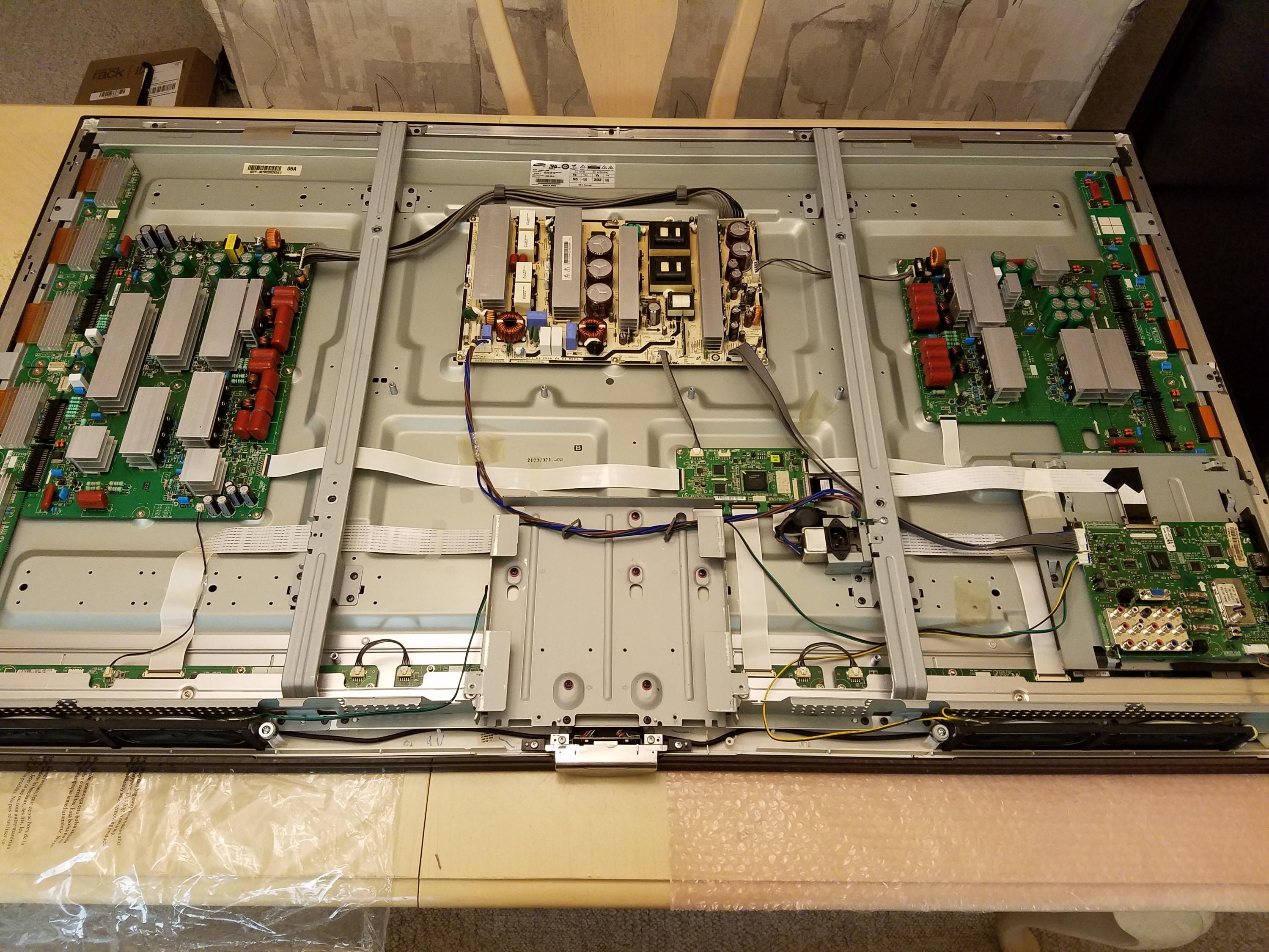 About a week ago lightning struck a tree very close to house and took out both my 63" and the 51" ....the 63 cycles on off on off on off very quickly, while the 51 does nothing, the screen does light up when plug in but goes black. Have ordered replacement power boards for both hoping that's all I need...."yeah right" figured it was a good start. Any other ideas would be much appreciated.