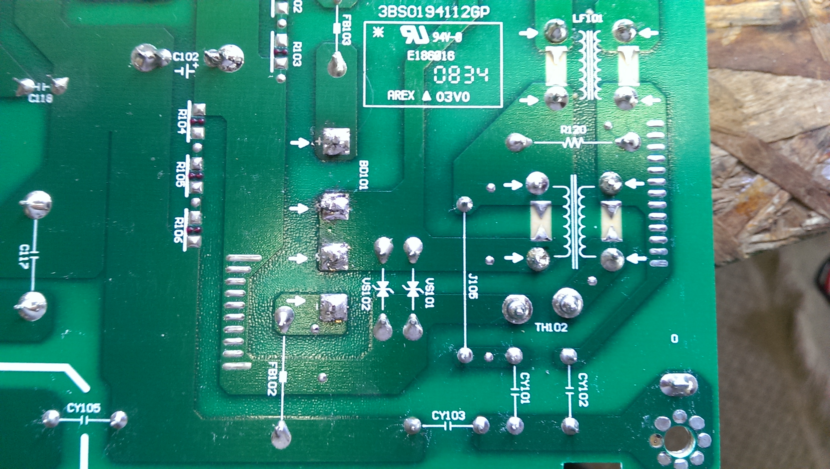 By the way, if you look at the legs of the bridge rectifier in your picture, did some one replace it since the legs are really long and not trimmed so it may touch the chassis? Some one work on this TV before?