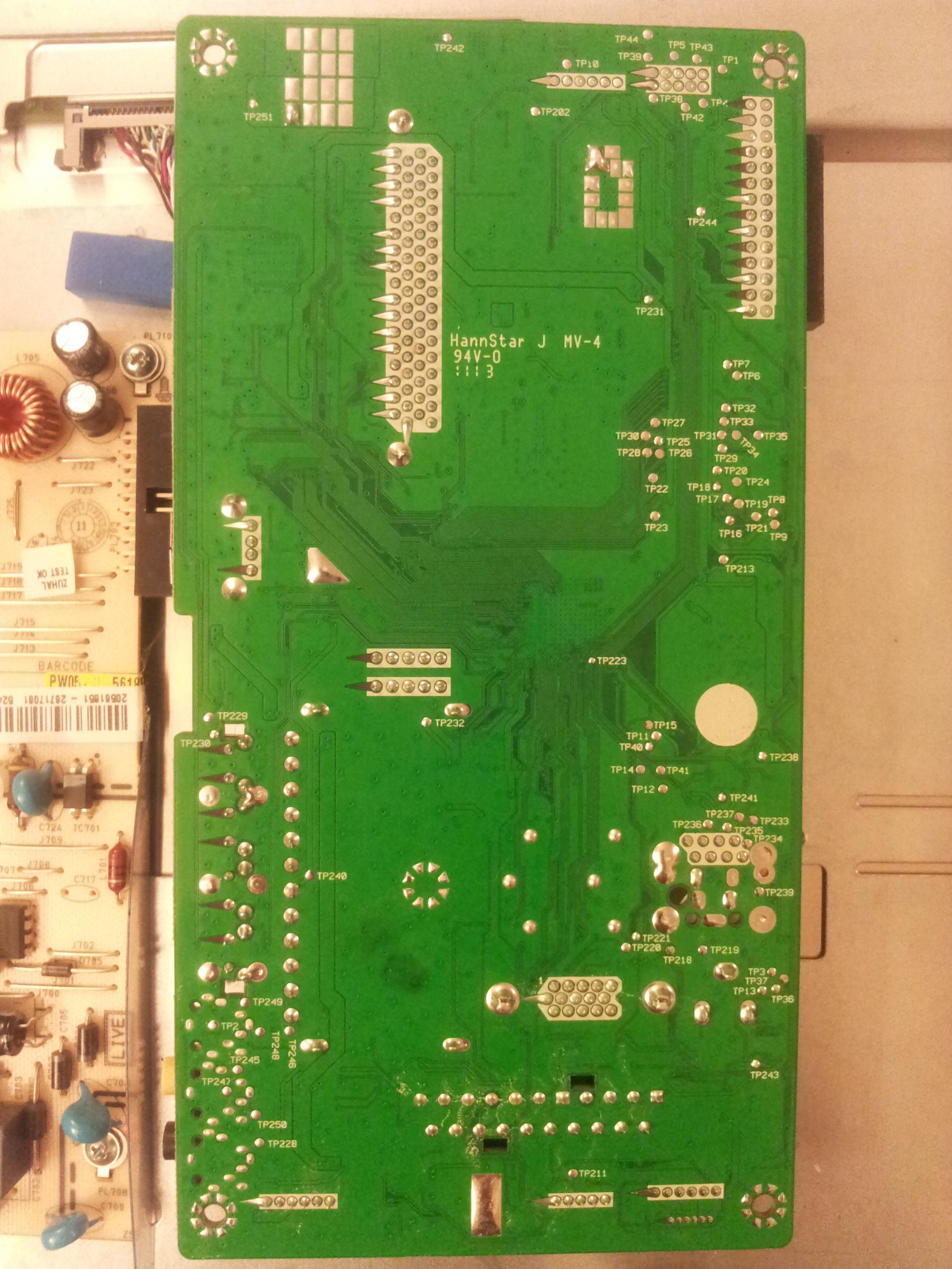 On the PS b/d on the connector next to PL706 when the tv is on and 'working' (numbered from top to bottom):