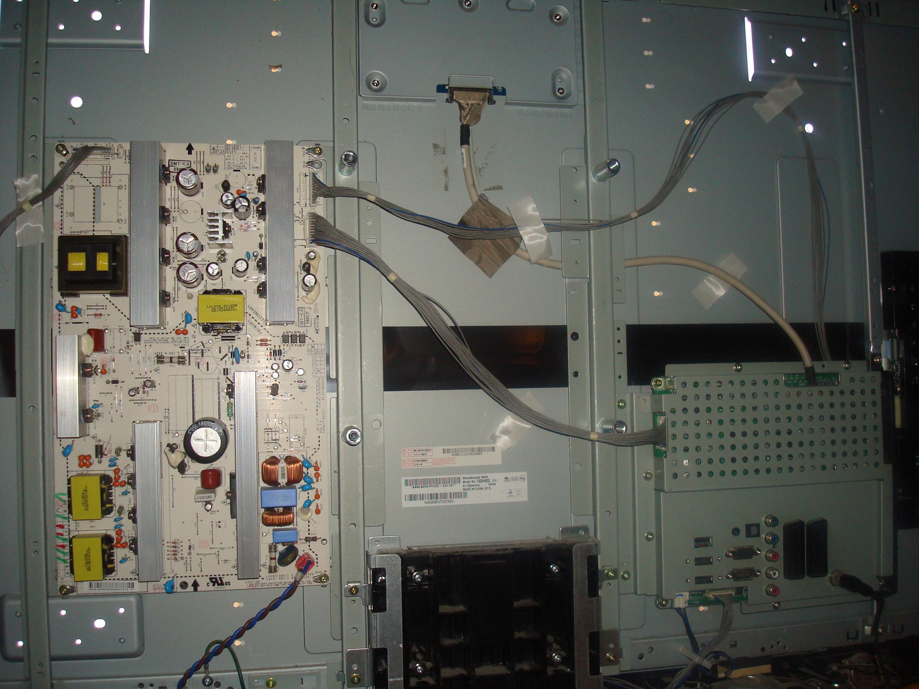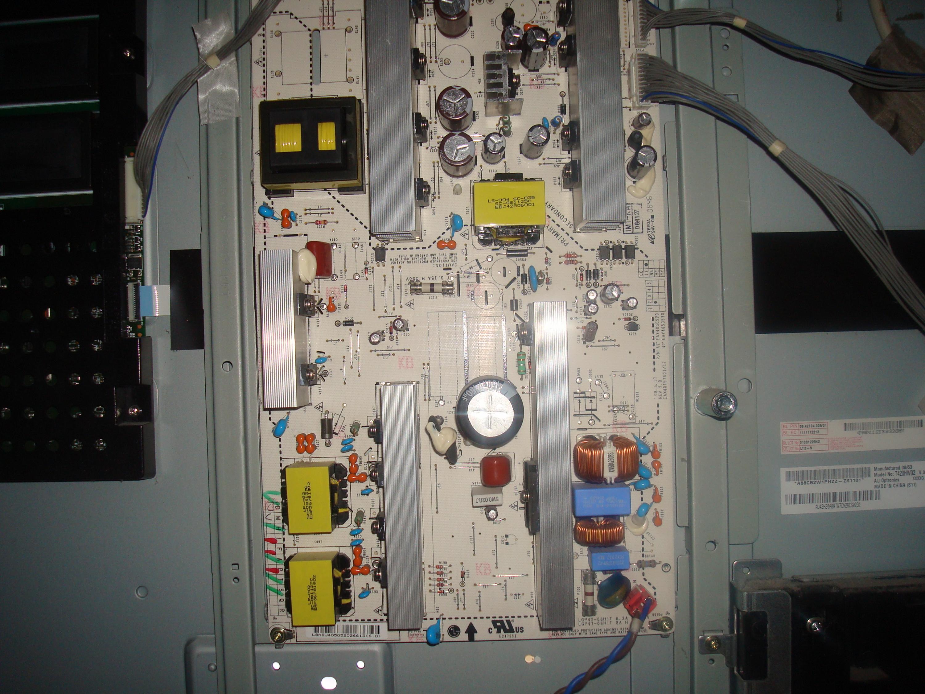 I recently picked up an LG 42 inch LCD tv, the backlight is okay, I have checked all voltage outputs from the power supply board, and these all check out okay. There are no bulged capacitors, so the power board appears to be okay.