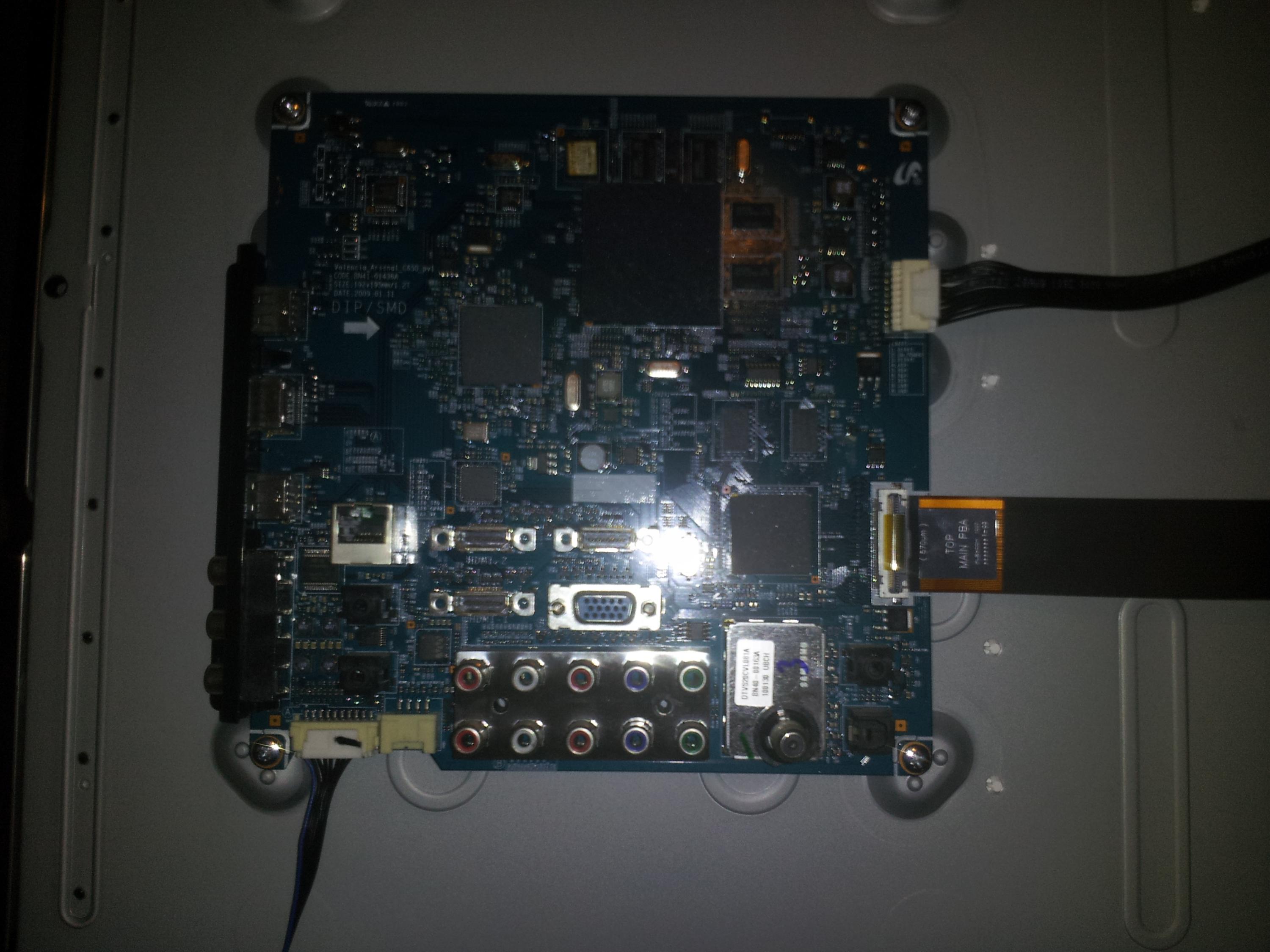 I checked the capacitors, which seem to be fine. I tried re-seating the T-con board's cable, nothing. I have not yet torn the TV down completely to check the LCD tabs, but in pushing on the bottom portion of the screen, that didn't seem to do anything.
