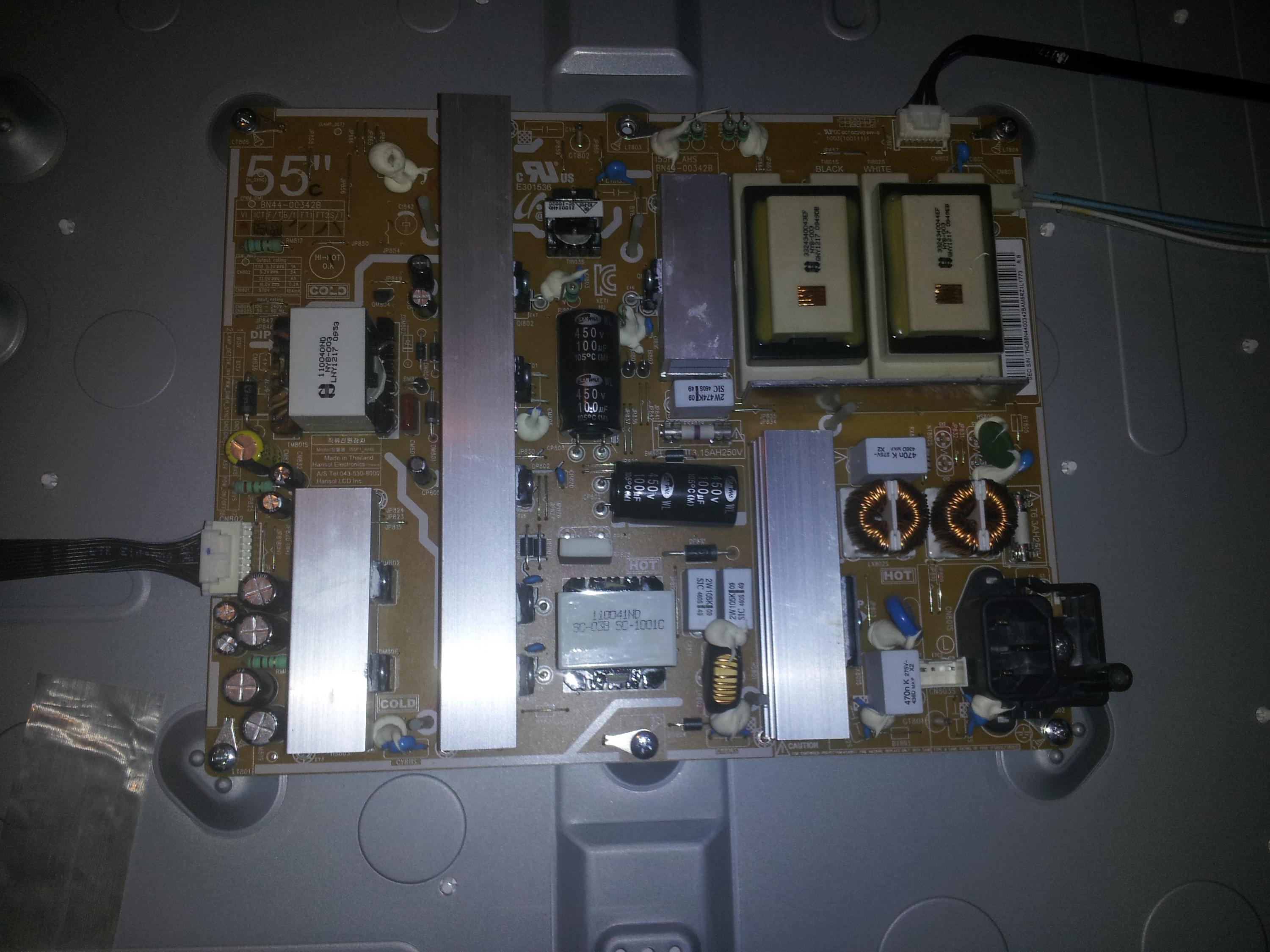 When I turned on my Samsung LN55C630(K1F) LCD this morning, there were a bunch of thin black lines running the width of the screen, horizontally. All lines are about 1mm thick with equal spacing between all lines. Issue is found all on inputs, also on menu screen.