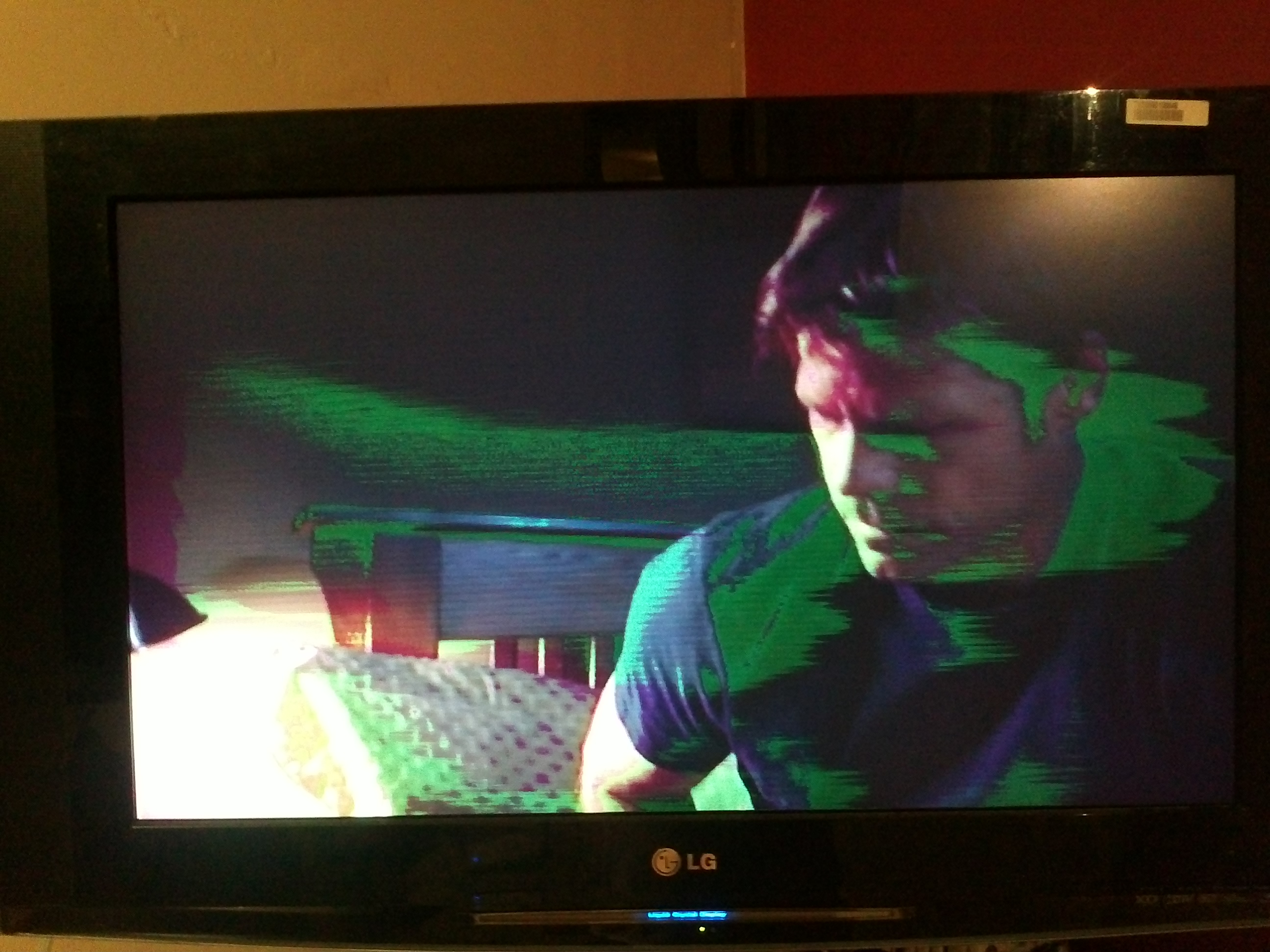 Hi, I have an LG 32LX1D LCD TV with a convergence issue I think. The objects on picture look with green and magenta stripes on the right side.