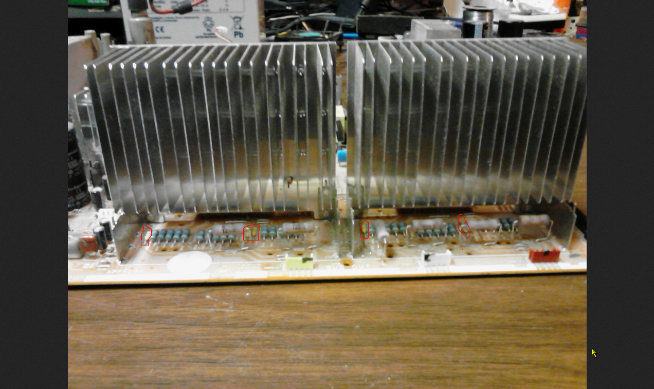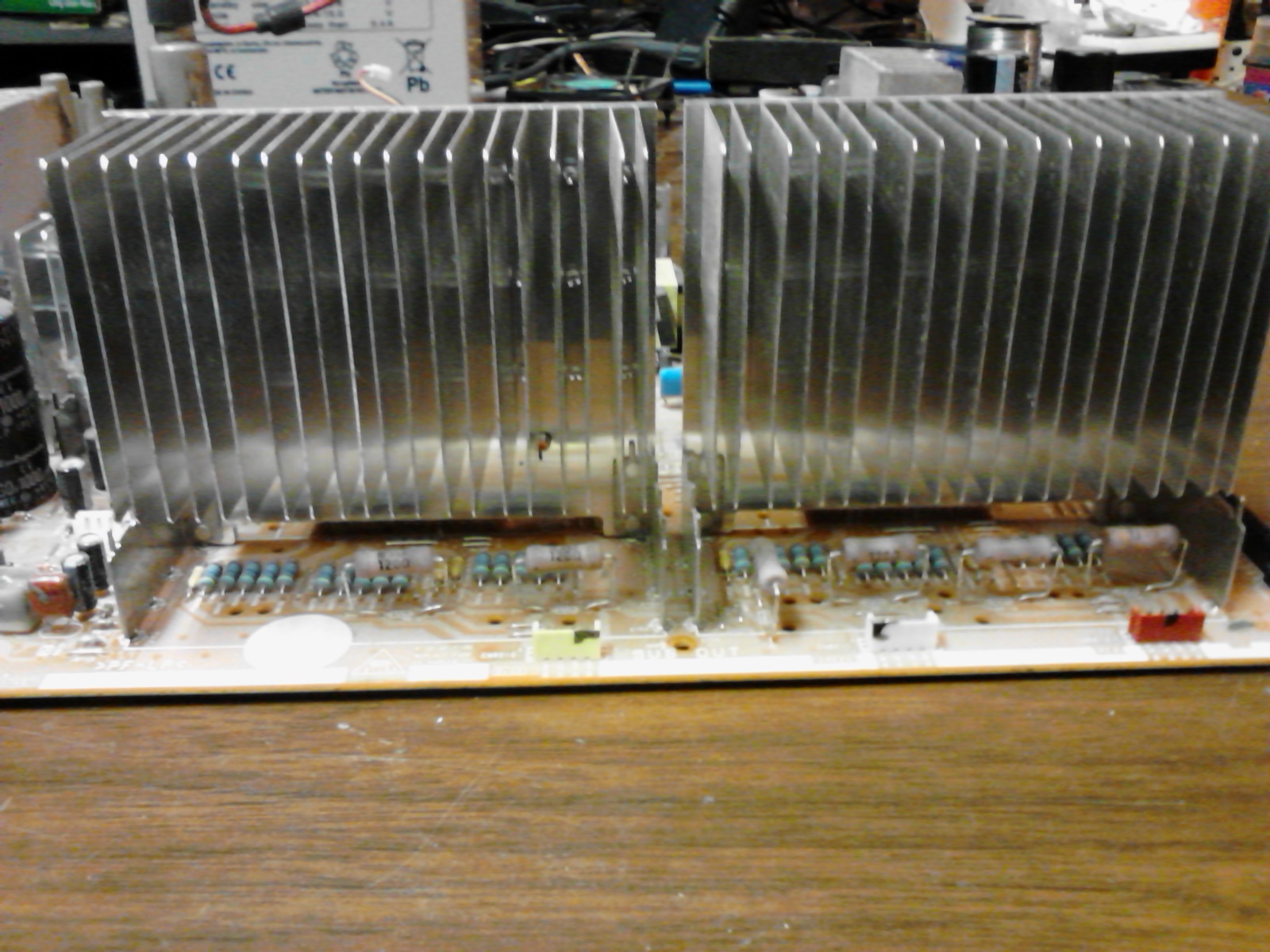 There are 6 big resistors under the heatsink, 120 ohm, unsure of wattage rating.