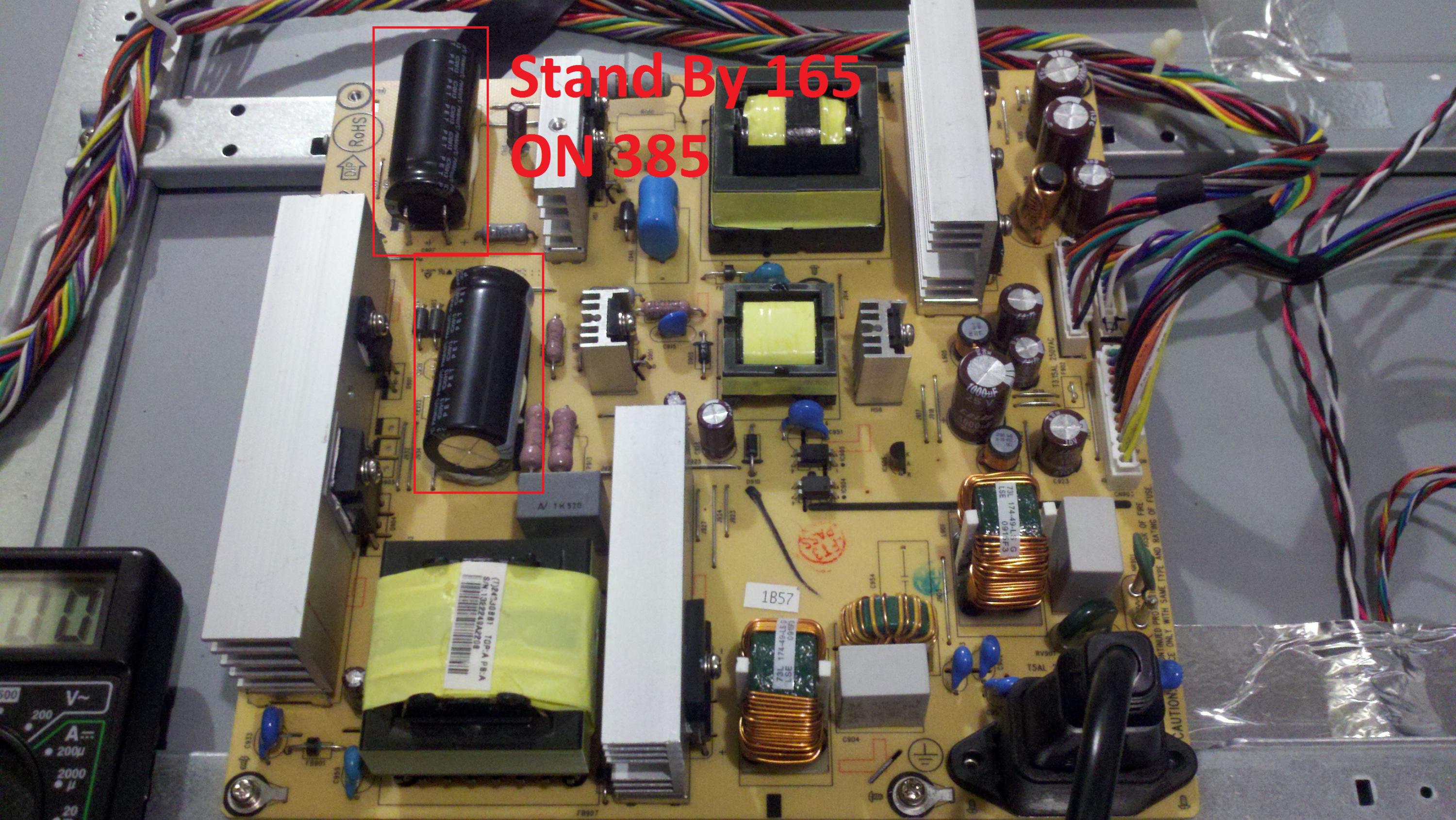 Any info or help would be great, im no tv expert, but I cant seem to figure this thing out, none of the caps look bad, and I did buy an ESR cap tester, all the caps ESR's where under the values in the chart that came with the meter, unless I missed one. I tried spraying some of the chips with freeze spary, but that didnt seem to help. Iv had all the cables off and back on, and all the board out to look for burns. Just read on testing voltage regulators, but have not tested any of them yet. Not sure of the proper way, to decide which board is causing the problem from here. I added some pictures of the boards.