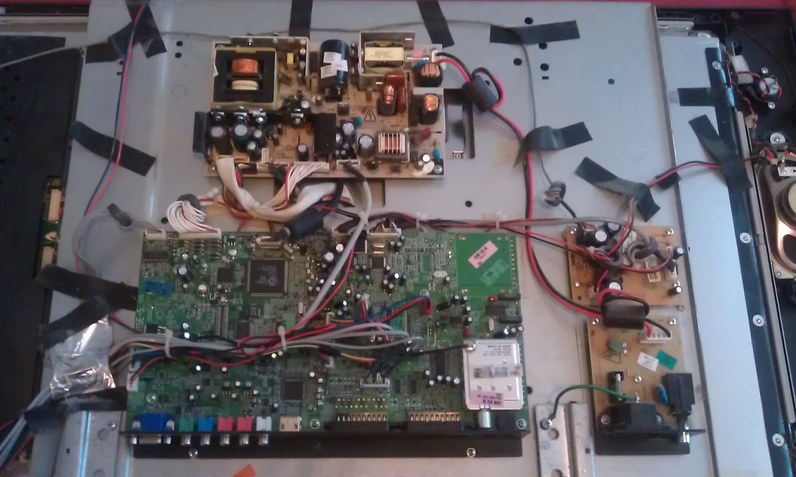 Hi all, i have the above TV with a strange picture problem. The sound is working but thats all. I cant see any menu at all. I have unplugged the LVDS cable & cleaned it but no difference. Could it be the main board?? I have noticed what i think is a bulging cap on the psu board not sure if this would cause it??