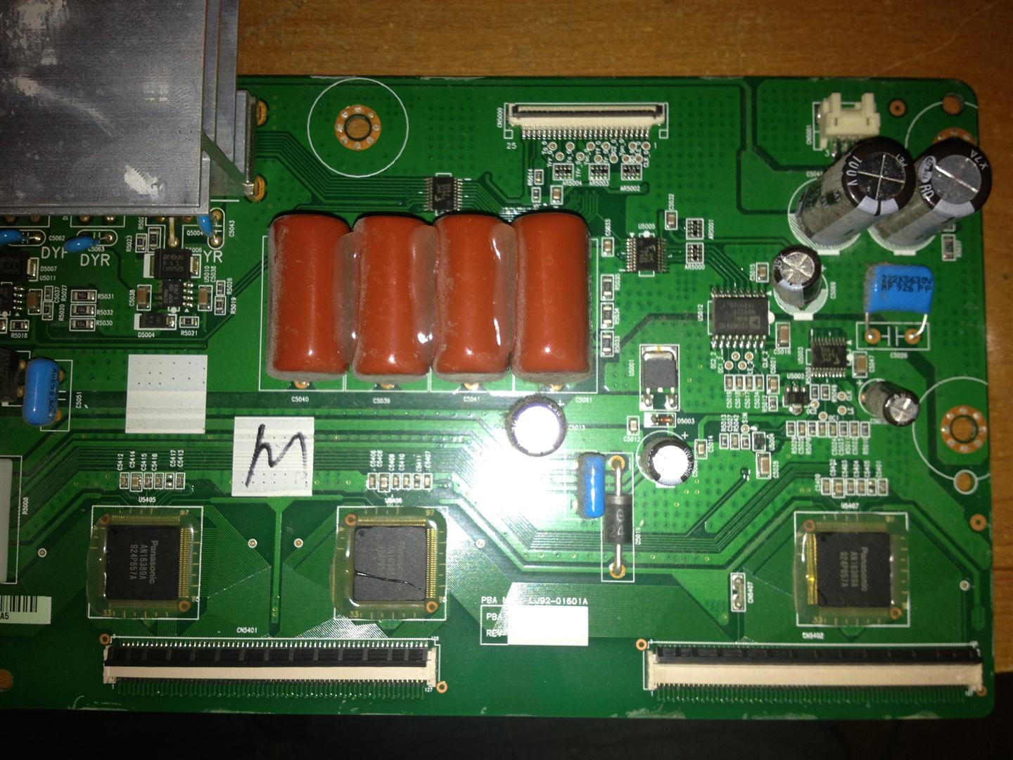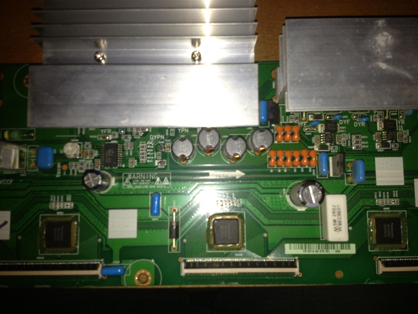 Y-board is a BN96-09738A. I measured the pins from plug CN5002 and there is a full short between pin:gnd and pins:Vs.