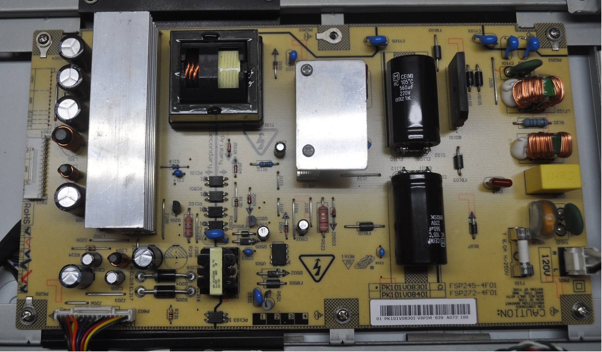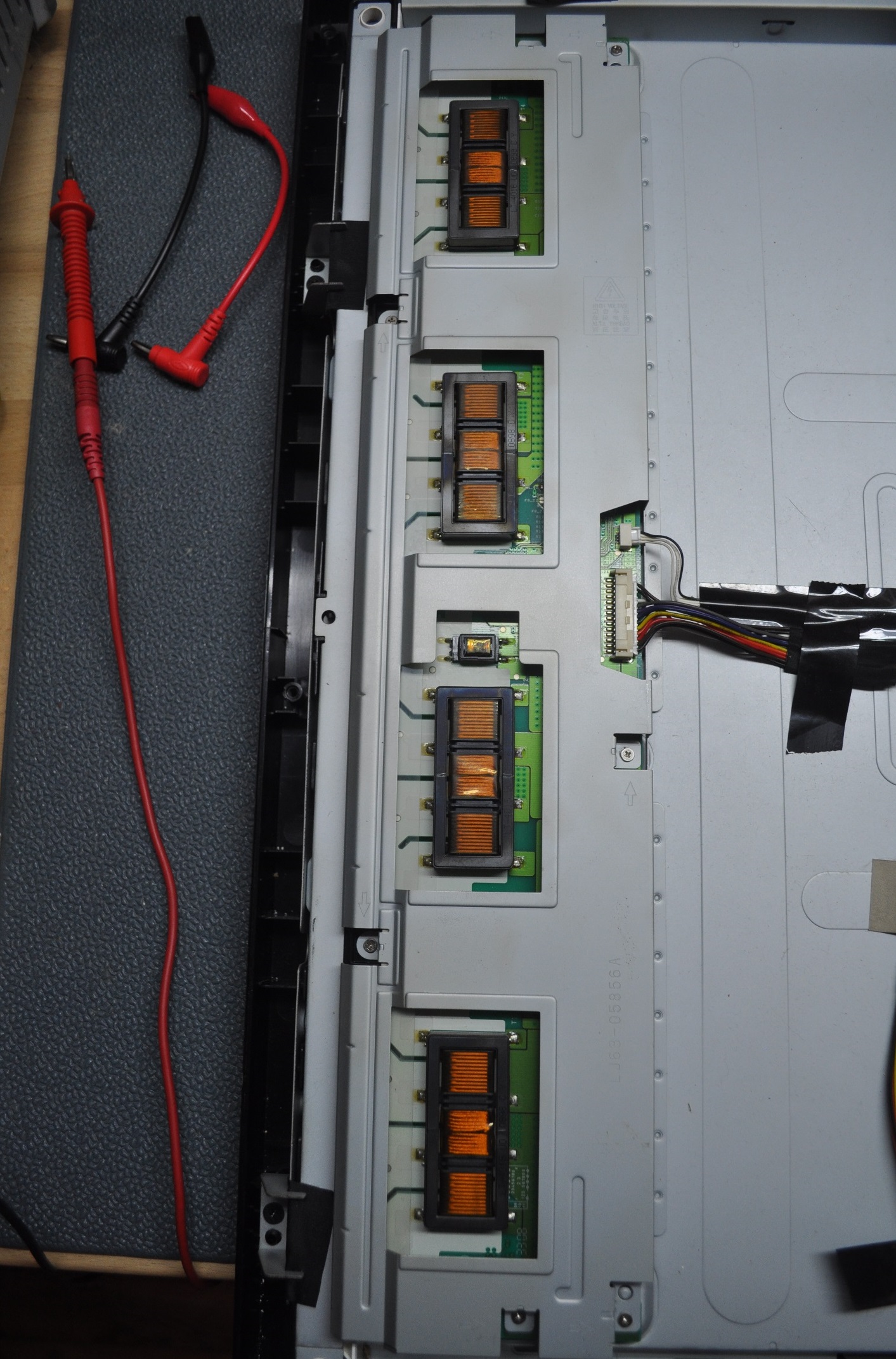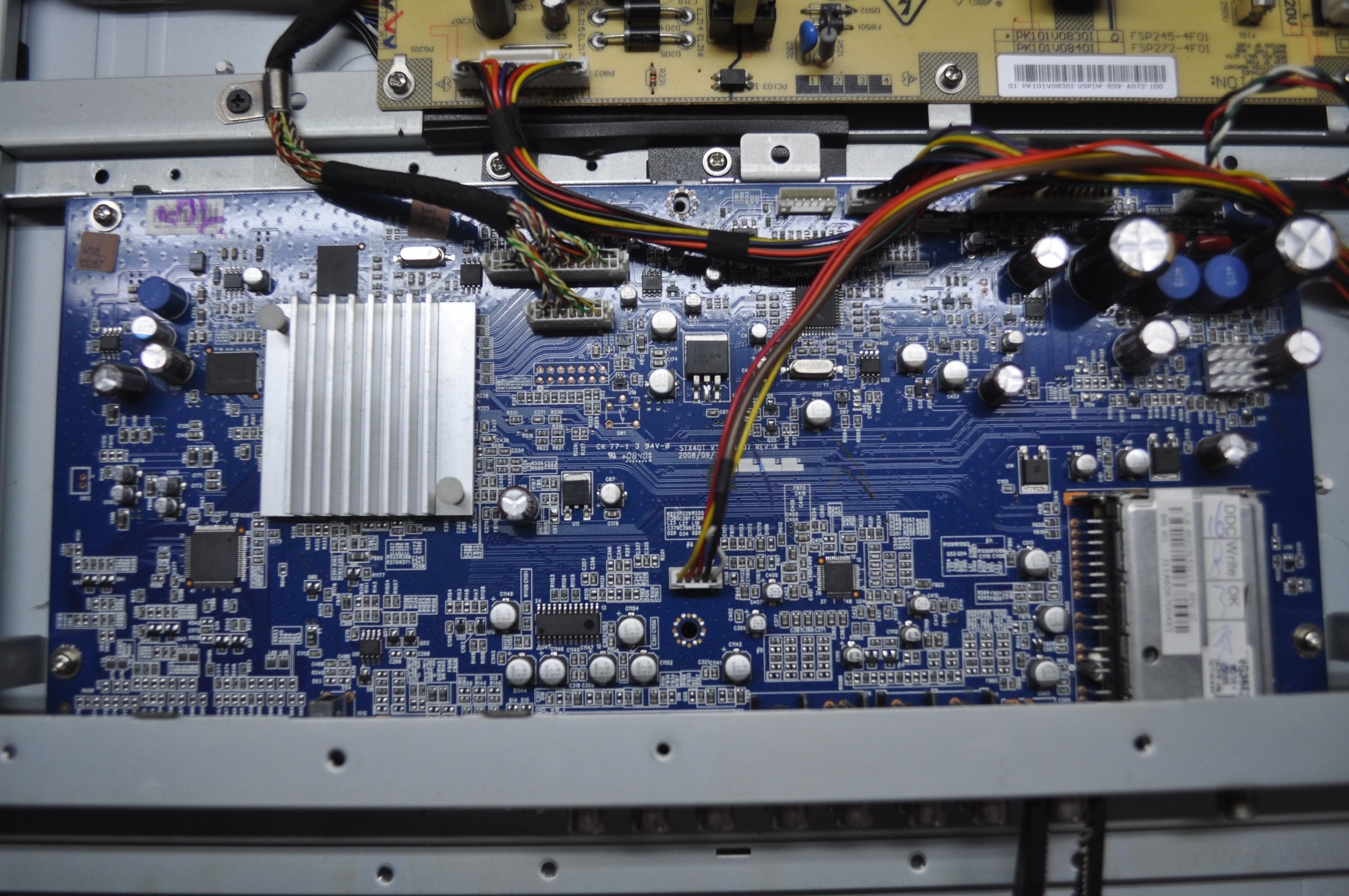 I have attached a picture of my workbench with the TV open. I have a benchtop digital multimeter, oscilloscope, function generator, and an ESR meter. Believe it or not, even with all this equipment I have a limited electronics knowledge. So I have come here for assistance with diagnosing this TV. I will be quick to reply, and follow all directions and recommendations.