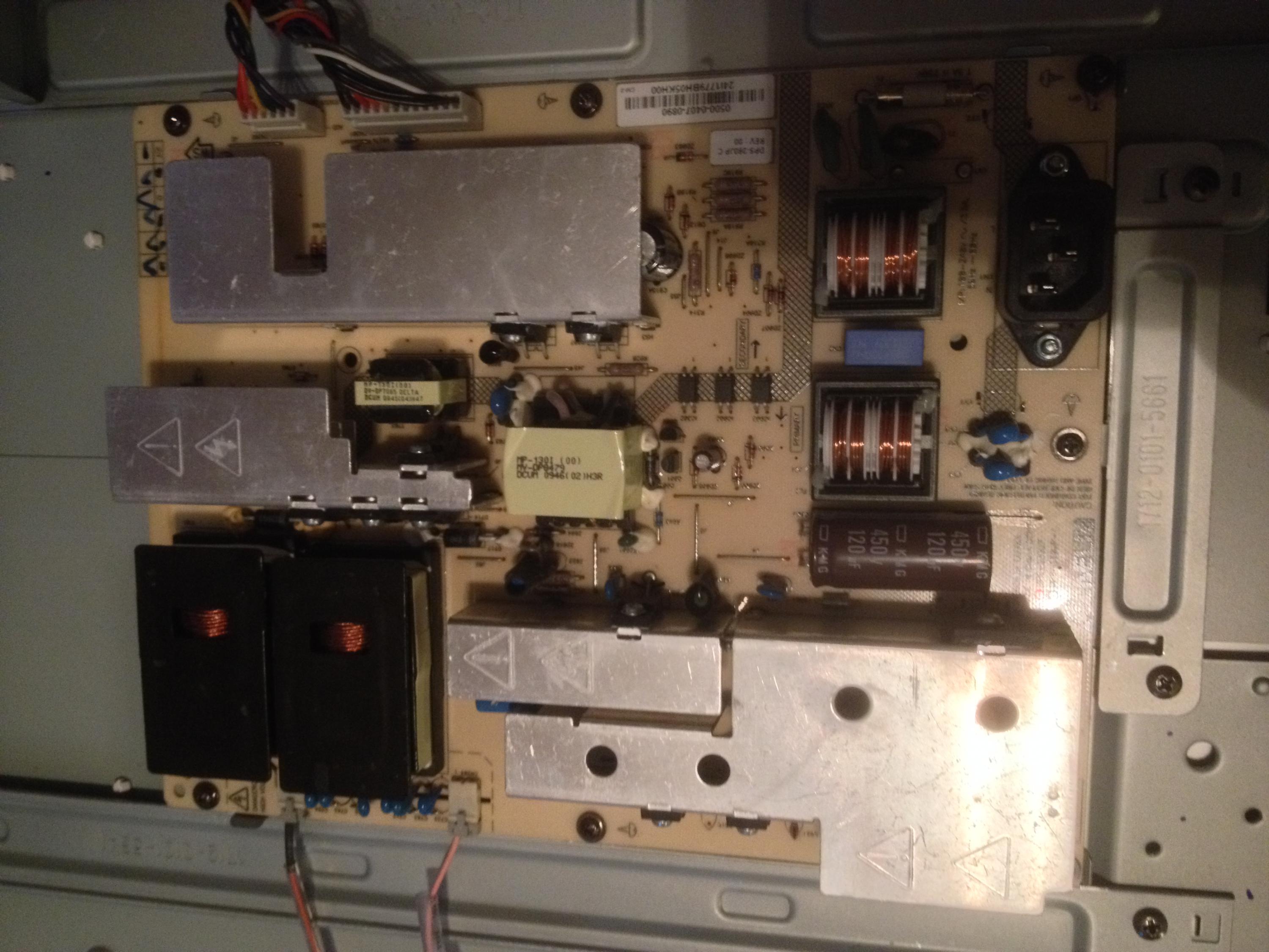 Hello everyone. I have used this forum to troubleshoot the problem with my TV. I have a 42" Vizio SV420M that was in standby when a lightning strike hit nearby. After that moment, the TV would no longer power on. The orange Vizio logo lights up when plugged in, but there is no response to power button on TV or remote. Upon reading numerous topics on BadCaps with the same symptoms on Vizio's, I am in the process of eliminating potential problem parts. I ordered a replacement power supply board and had the same symptoms, so returned the power supply board. I then began to look into the well known issue with voltage regulators on the main board. Following are the readings taken from the main board with unit plugged in, but not on.