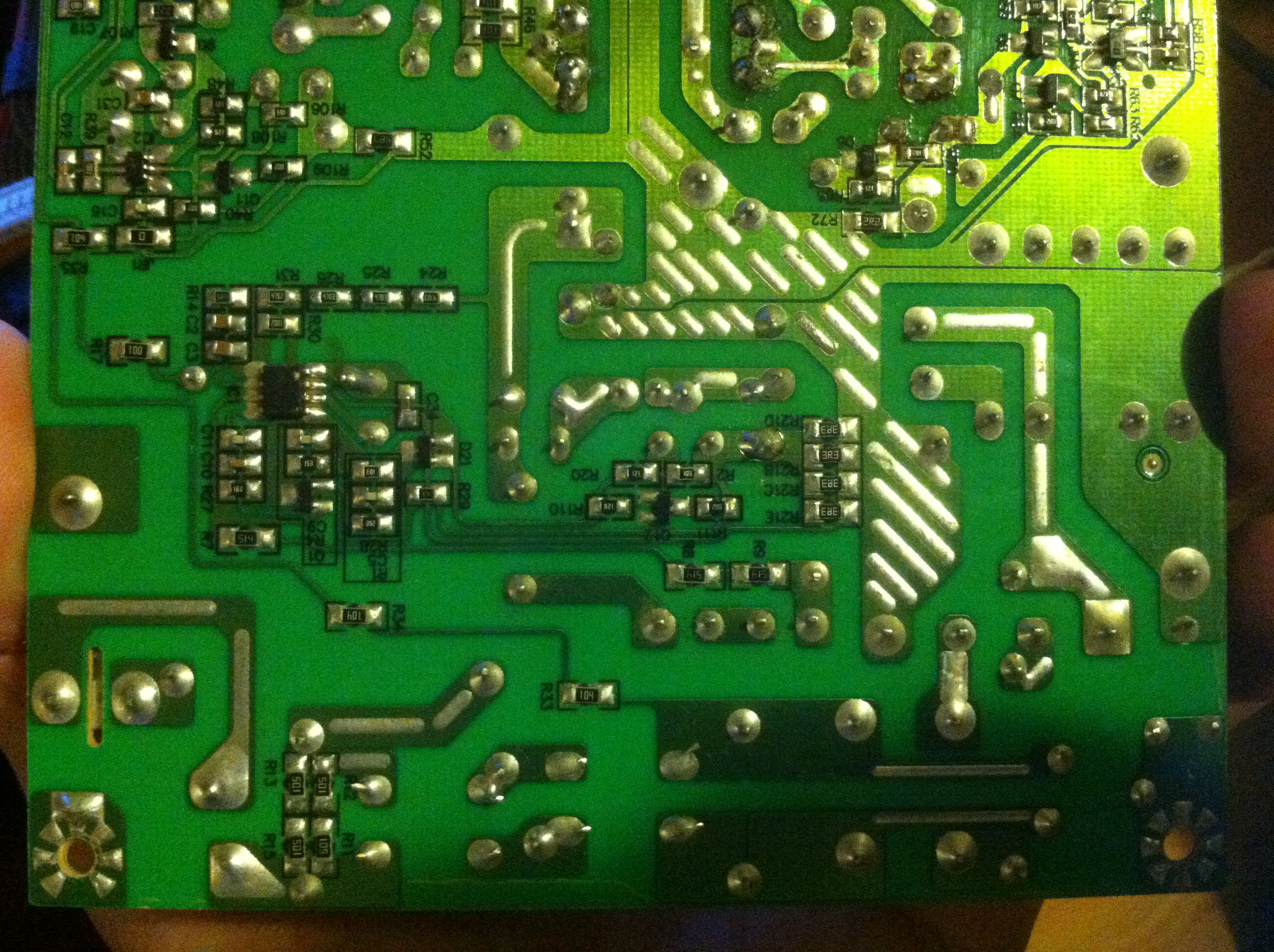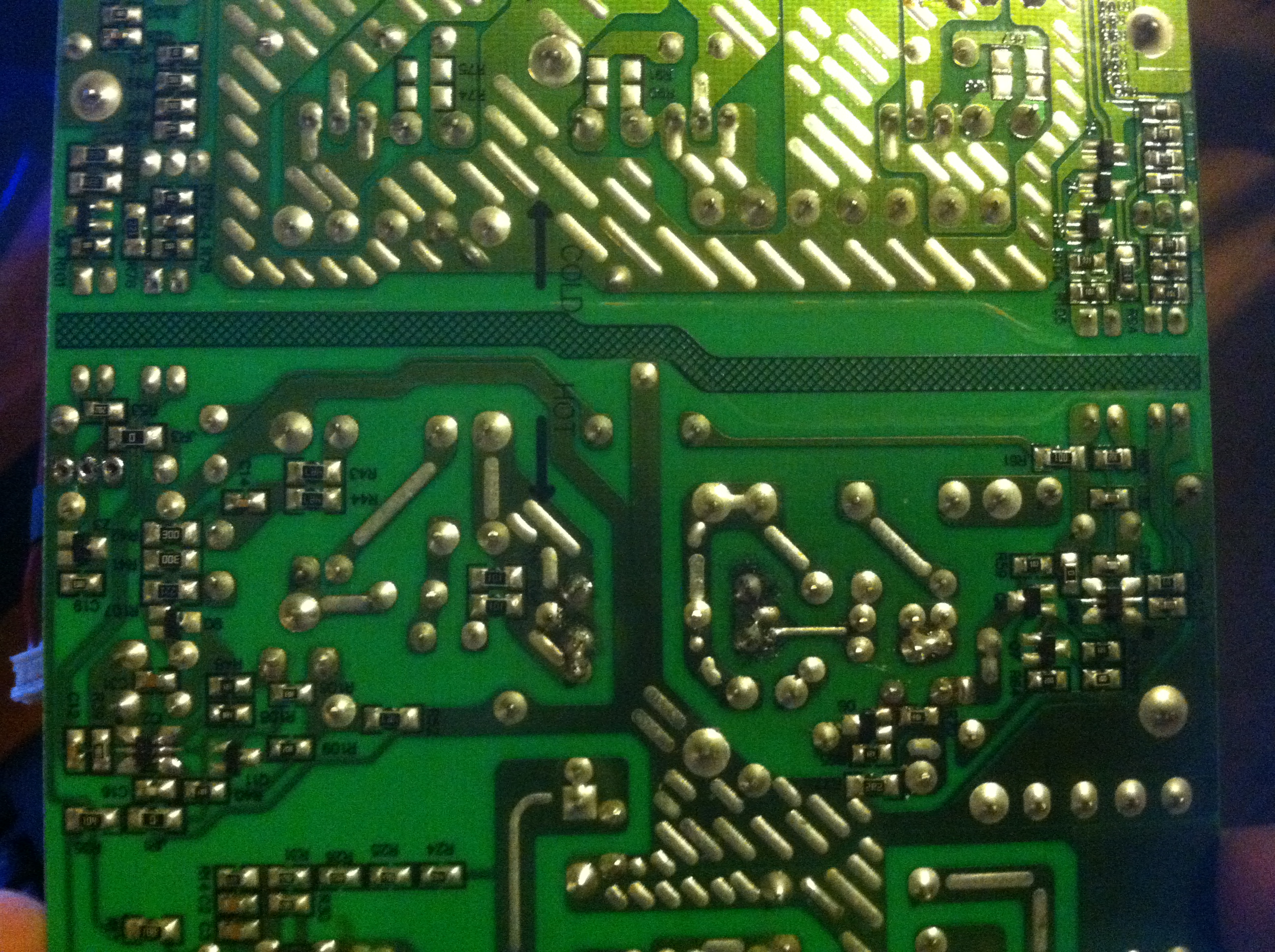 I just pulled the PSU and found two arc burns on the back of the panel, but I don't see any damage to the board.