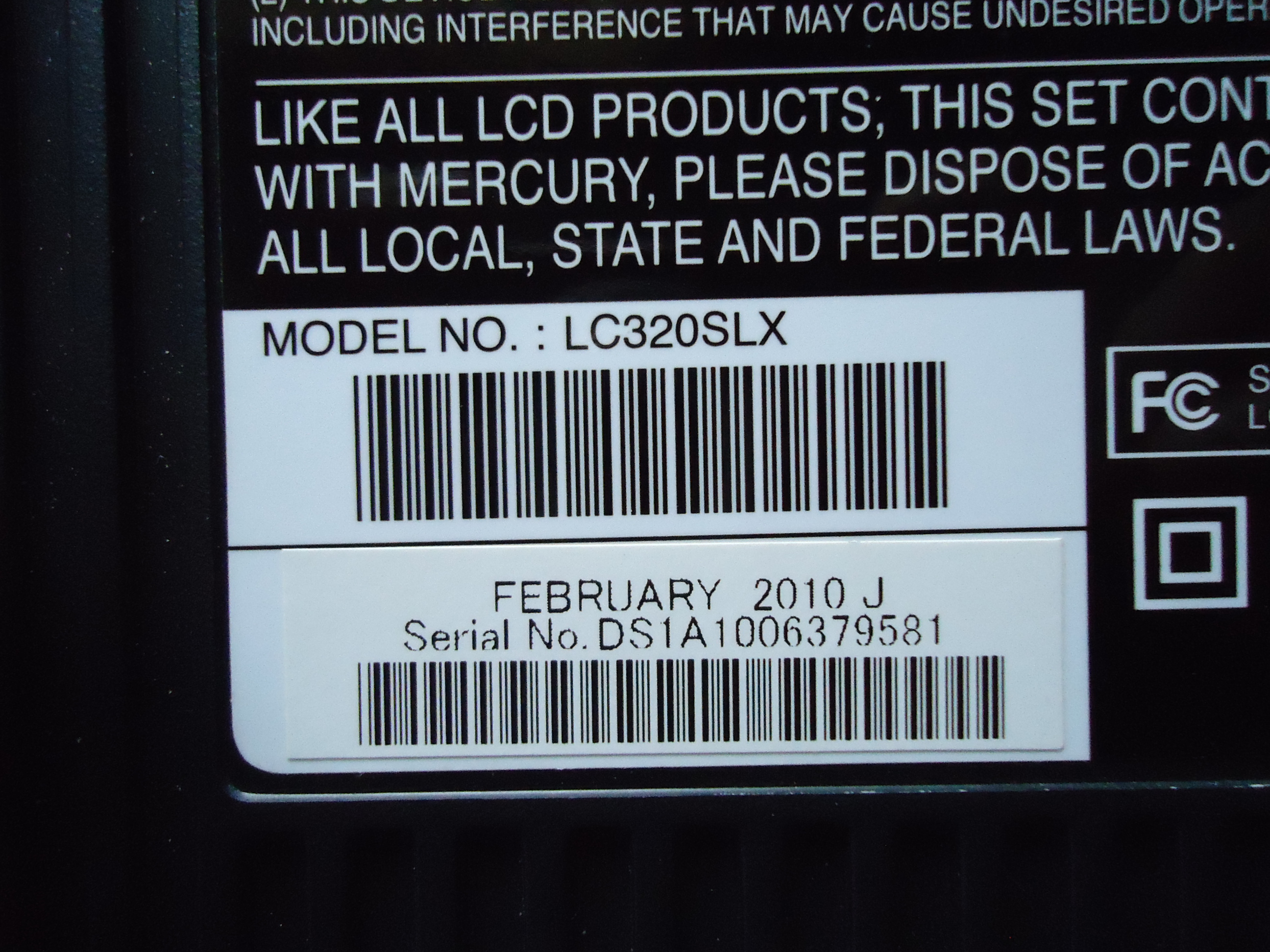 LC320SLX Also has a white screen Mine is a sylv. model same inside different outside.