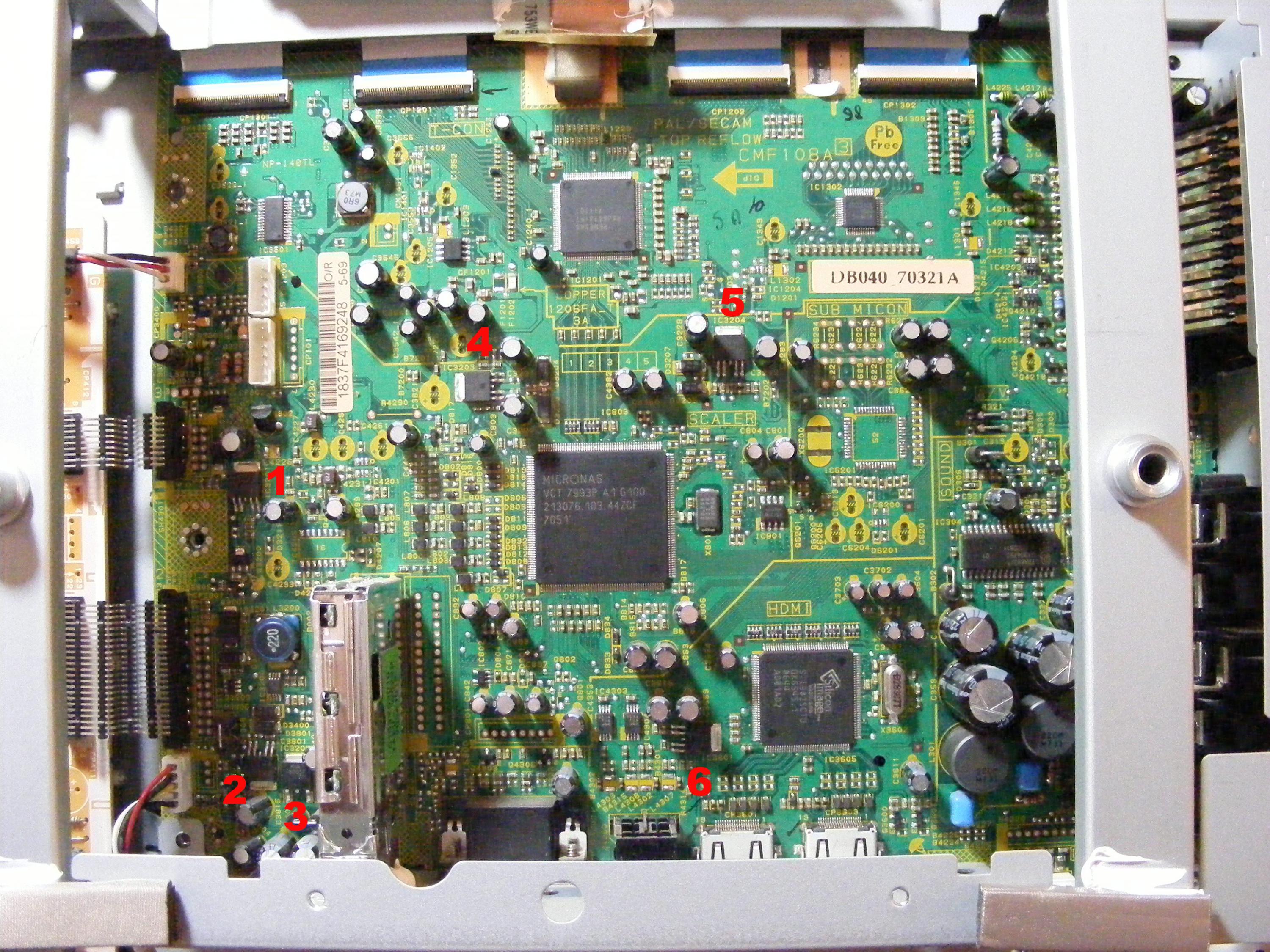 The power supply board is CEF286A and the main board is CMF108A. As you can see in the pics, the backlight inverter is on the PSU board. I've been unable to find any schematics for these boards and the pins are unmarked so I am having trouble testing and debugging where the problem might be. I don't know which pin is PSON or BLON so unable to properly test the PSU so far.