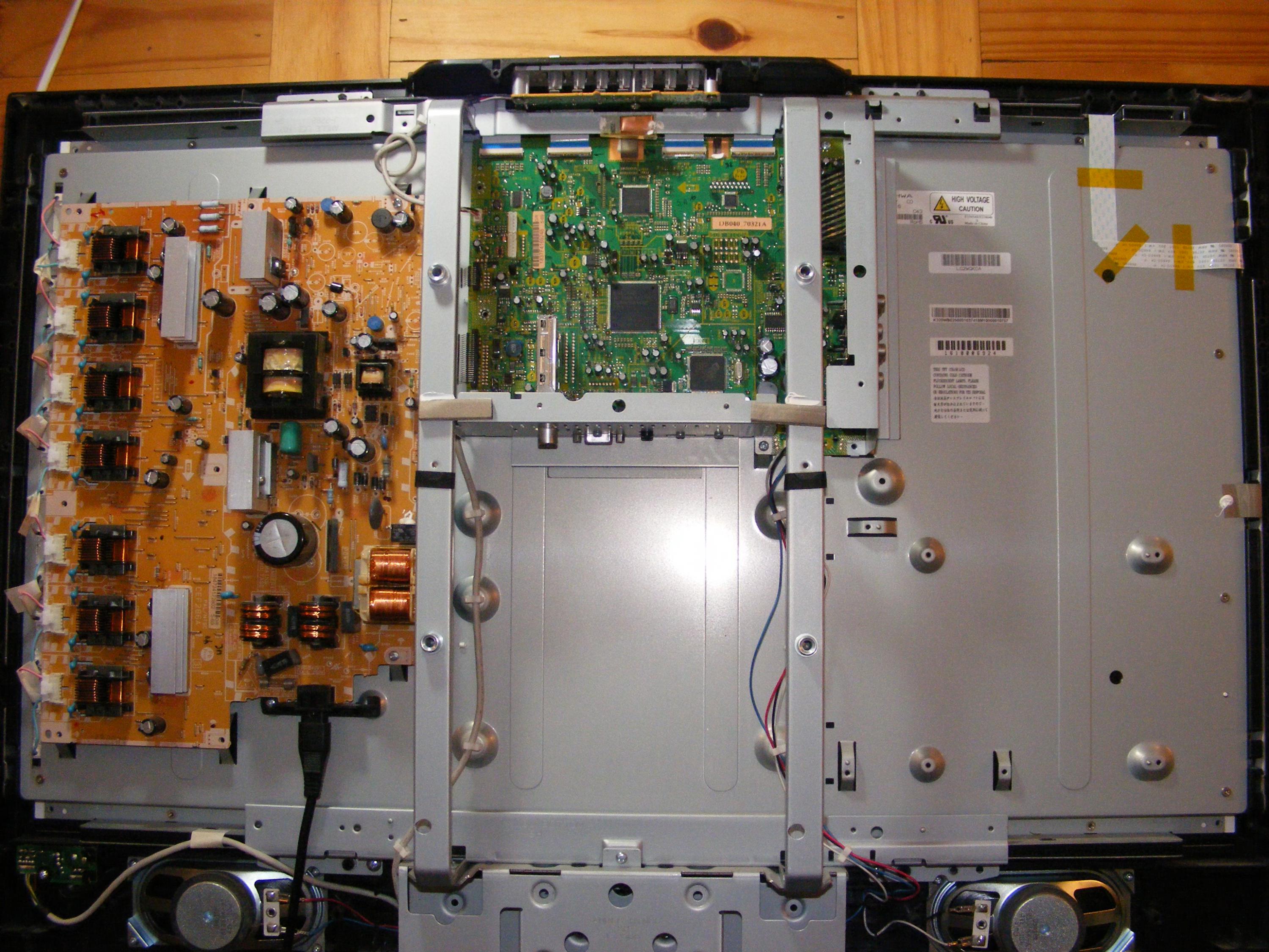 I've included pictures of the open TV, the two boards, and close-ups of the connectors between them.
