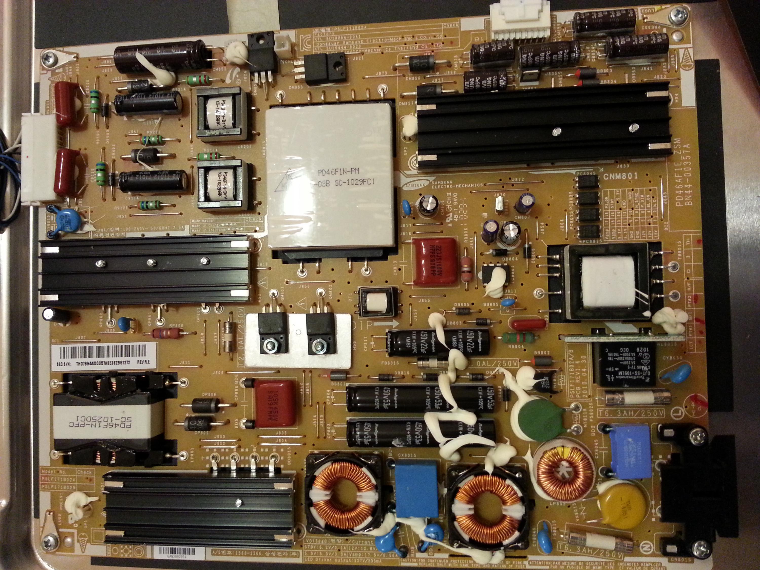 Hi all, I have a Samsung UA40C6900 tv. The problem with the tv is it keeps trying to power on repeatedly. I can hear the chime and for few seconds it shows distorted picture then again shuts down. Please see the attached pics of the tv. I am dealing for the first time with an LED slim tv so don't know what would be the correct reading on SMPS output. Here are the readings: