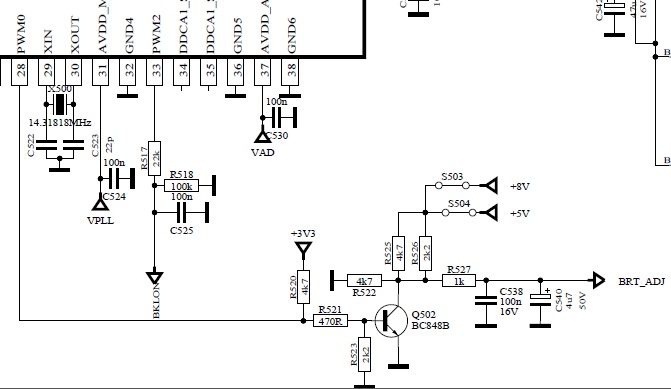 Ok, i started to follow BRT_ADJ circuit on logic board. I believe i found a irregularity, but i don't where the issue is coming from..