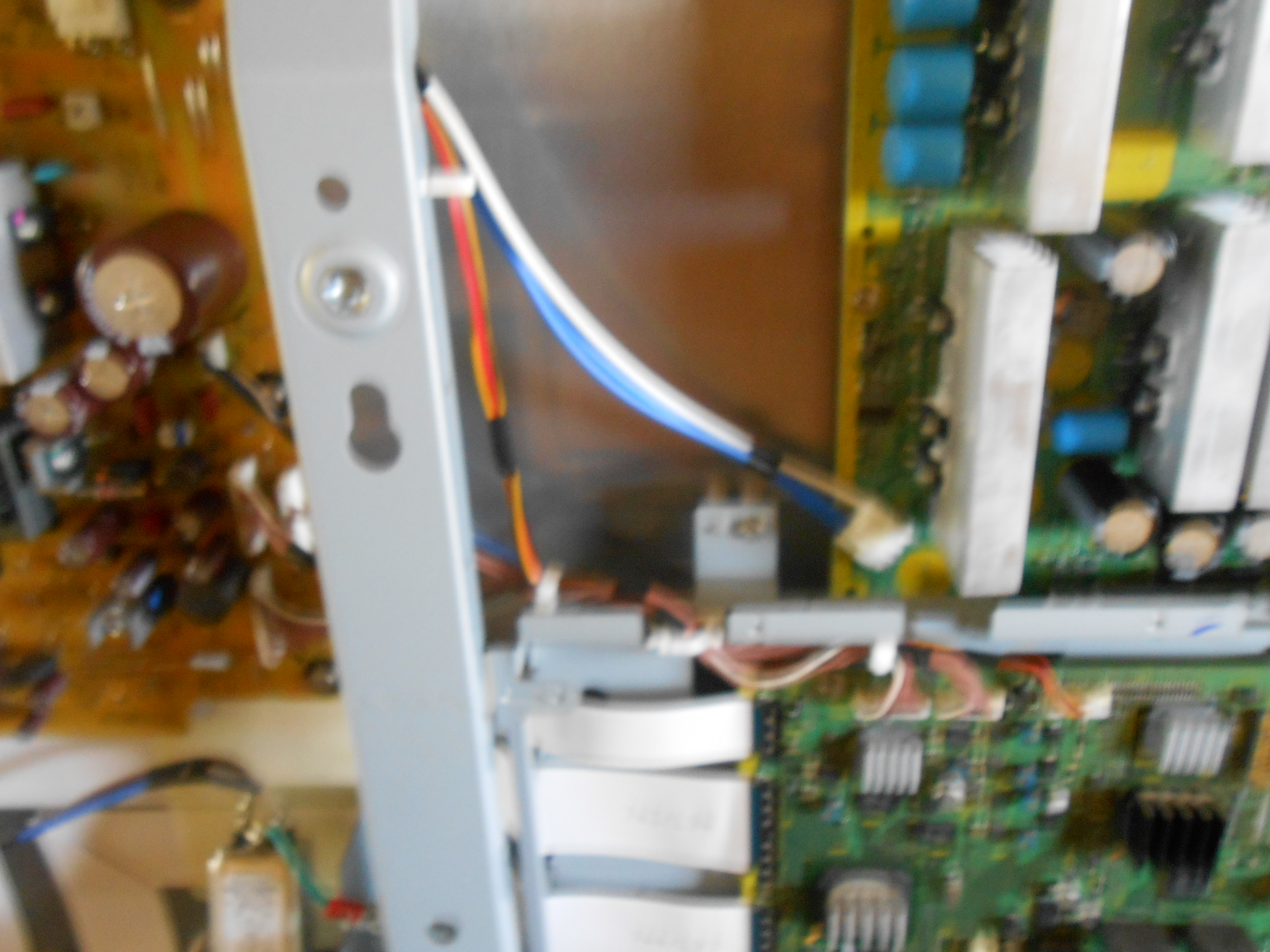Next step, unplug tv, get a 1/4" jumper cable (?) to fool the tv into thinking the fans work. As u can tell my tech is severely limited. I am about at my limit with the screws on back. Am very leery of electric shock as i have read.