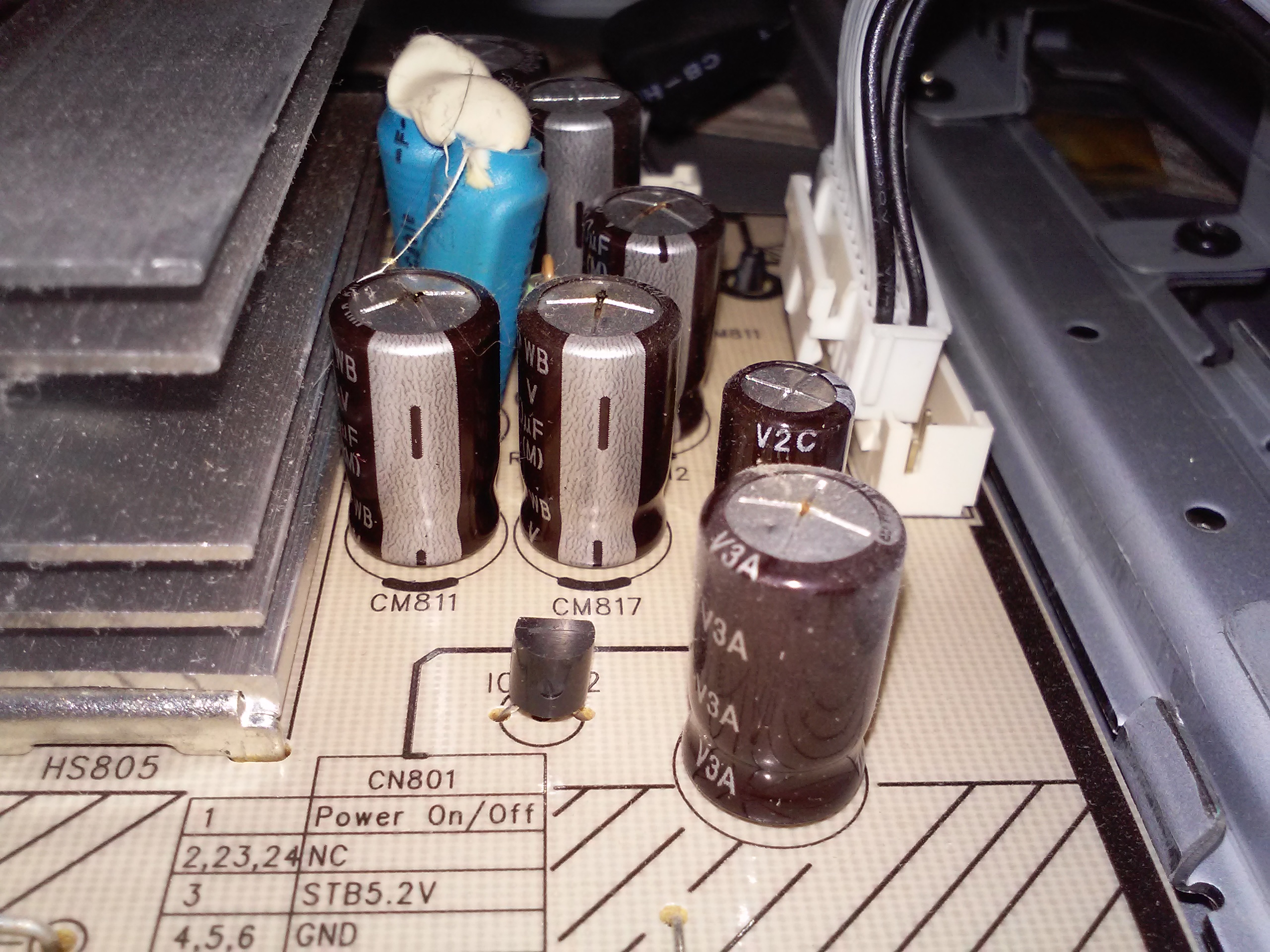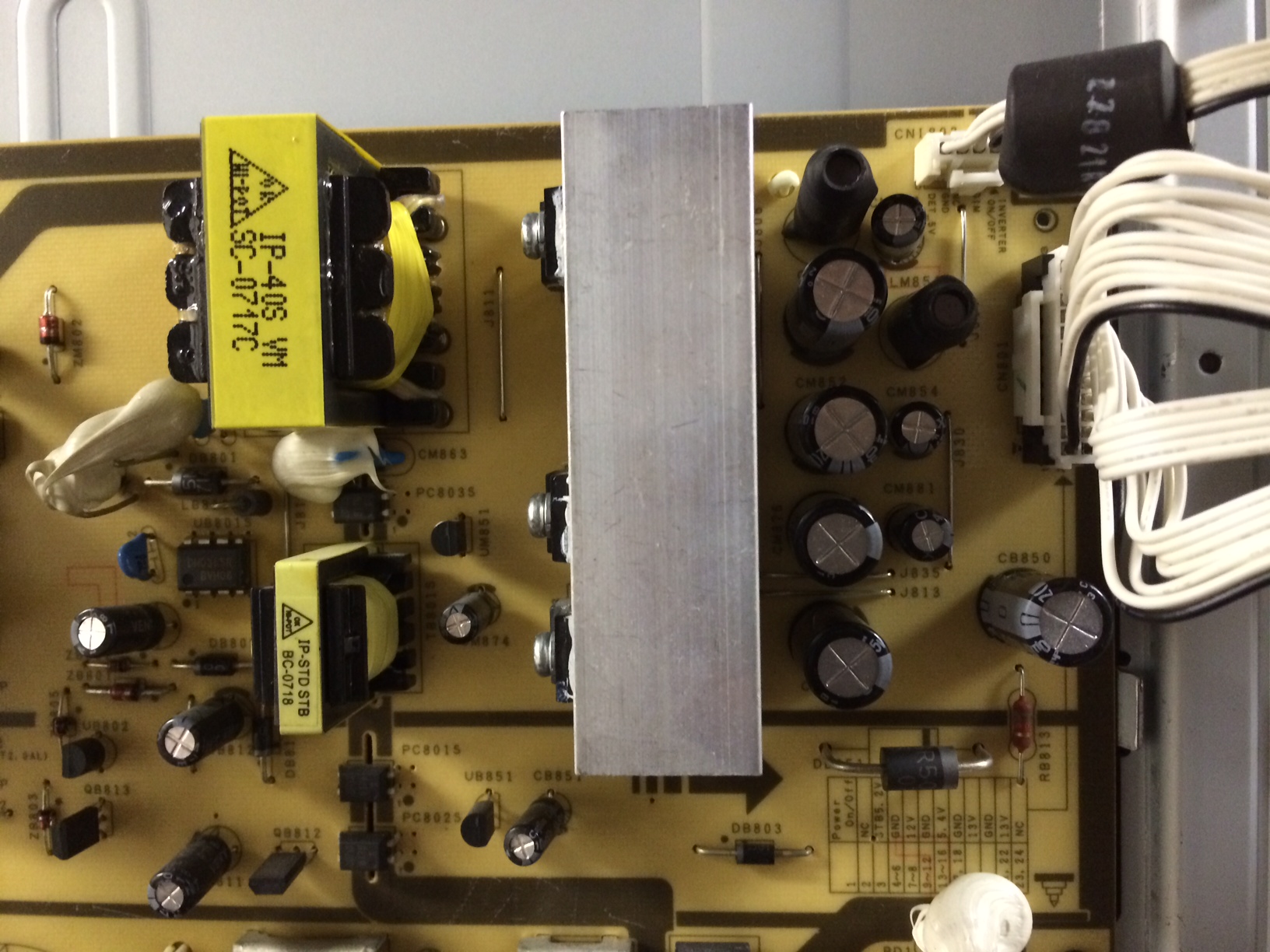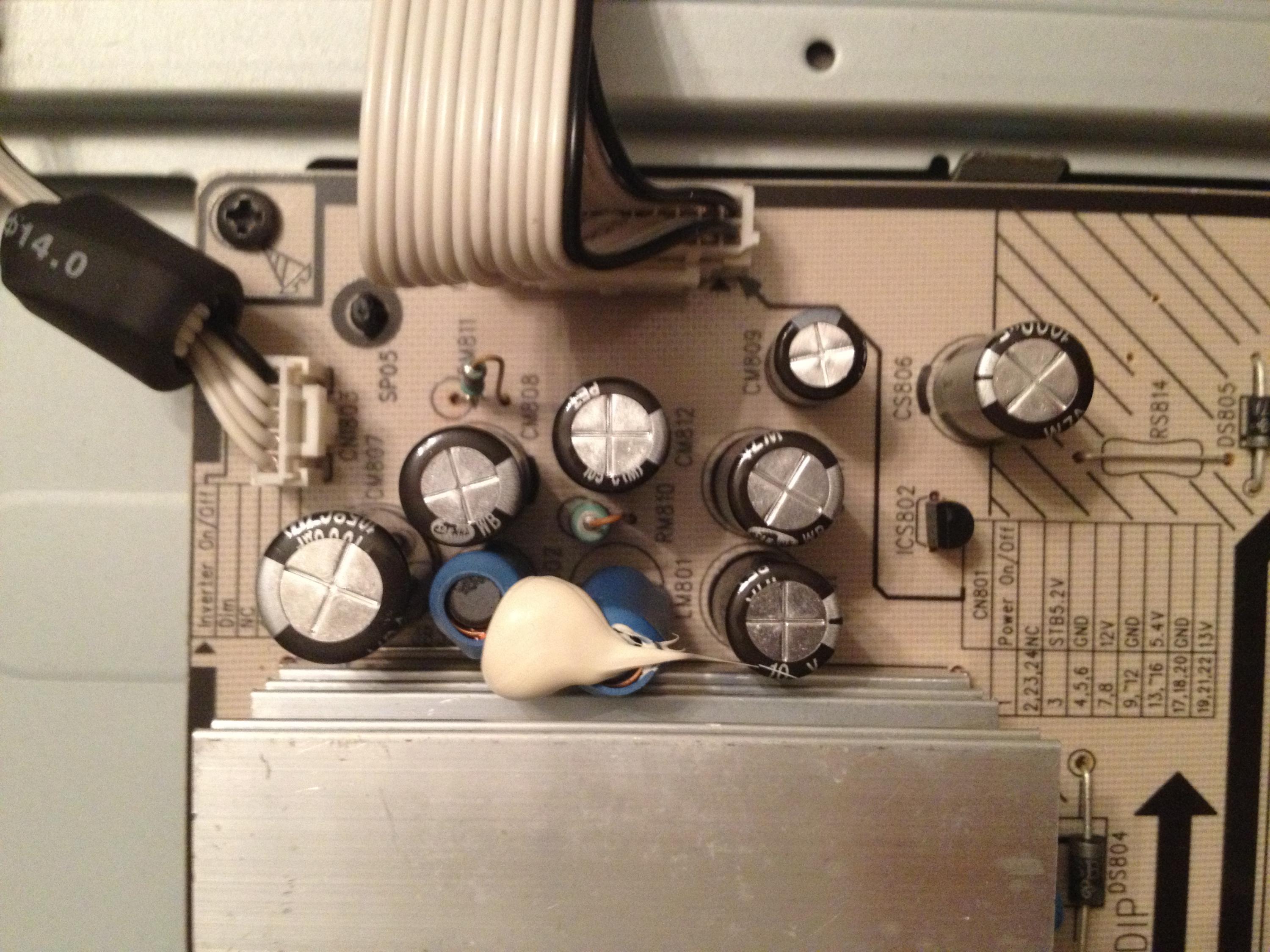 Hey I was watching this tv and adjusting color settings when I hear a pop and now I have no backlight but sound still works....I can see the screen if I use a flashlight and the power stays on just no picture...I thought maybe the backlight board but I came here to ask the experts.I see no physical signs that any of the capacitors bulged out but Ill post pics.
