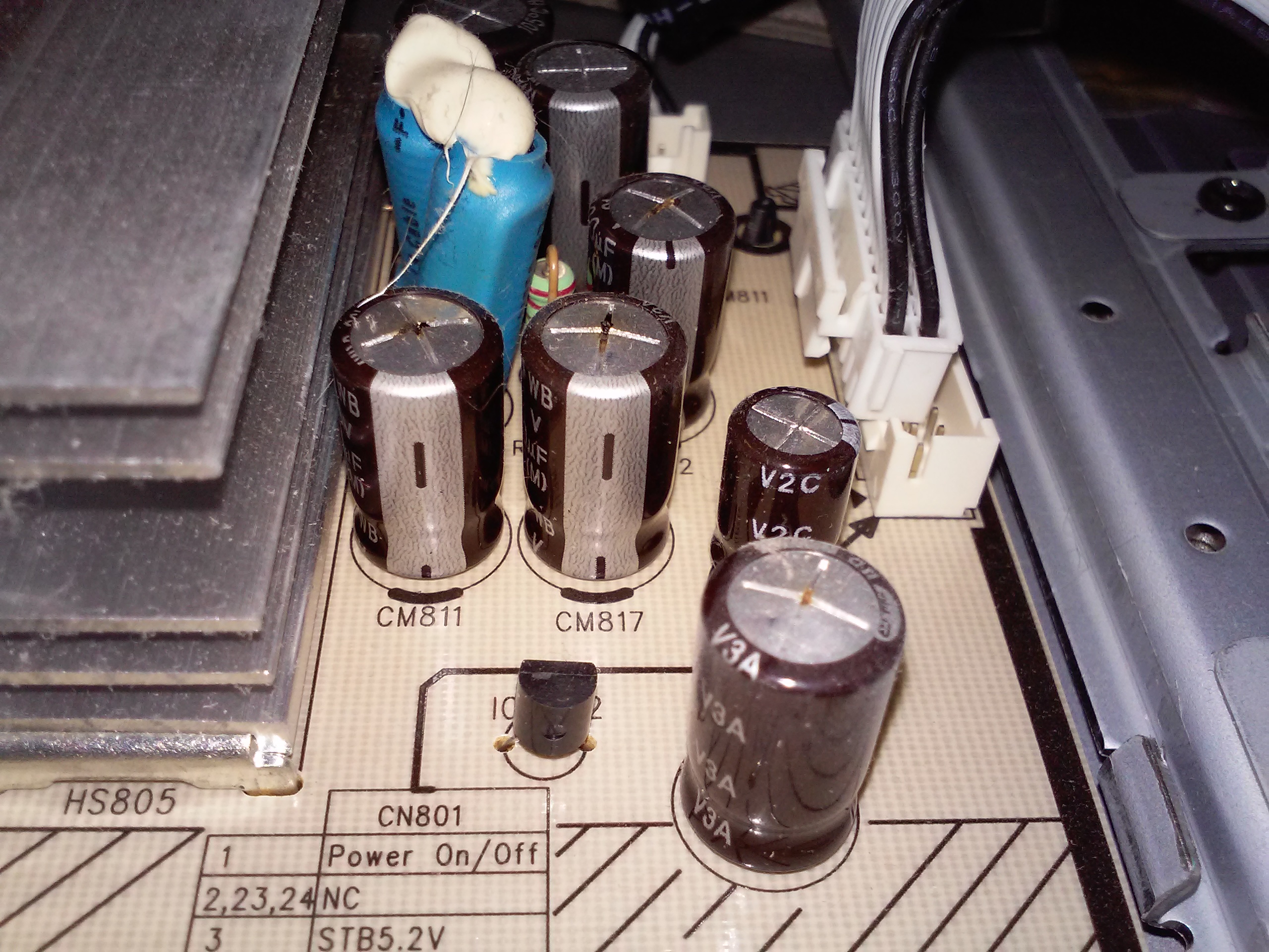 I have replaced the inverter board ($12 off eBay) and replaced the 5 capacitors I have read cause problems for other people (2 2200, 10v and 3 1000, 25v). But I did not notice any bulging capacitors; I just did this because it was a common way for these TVs to be fixed.