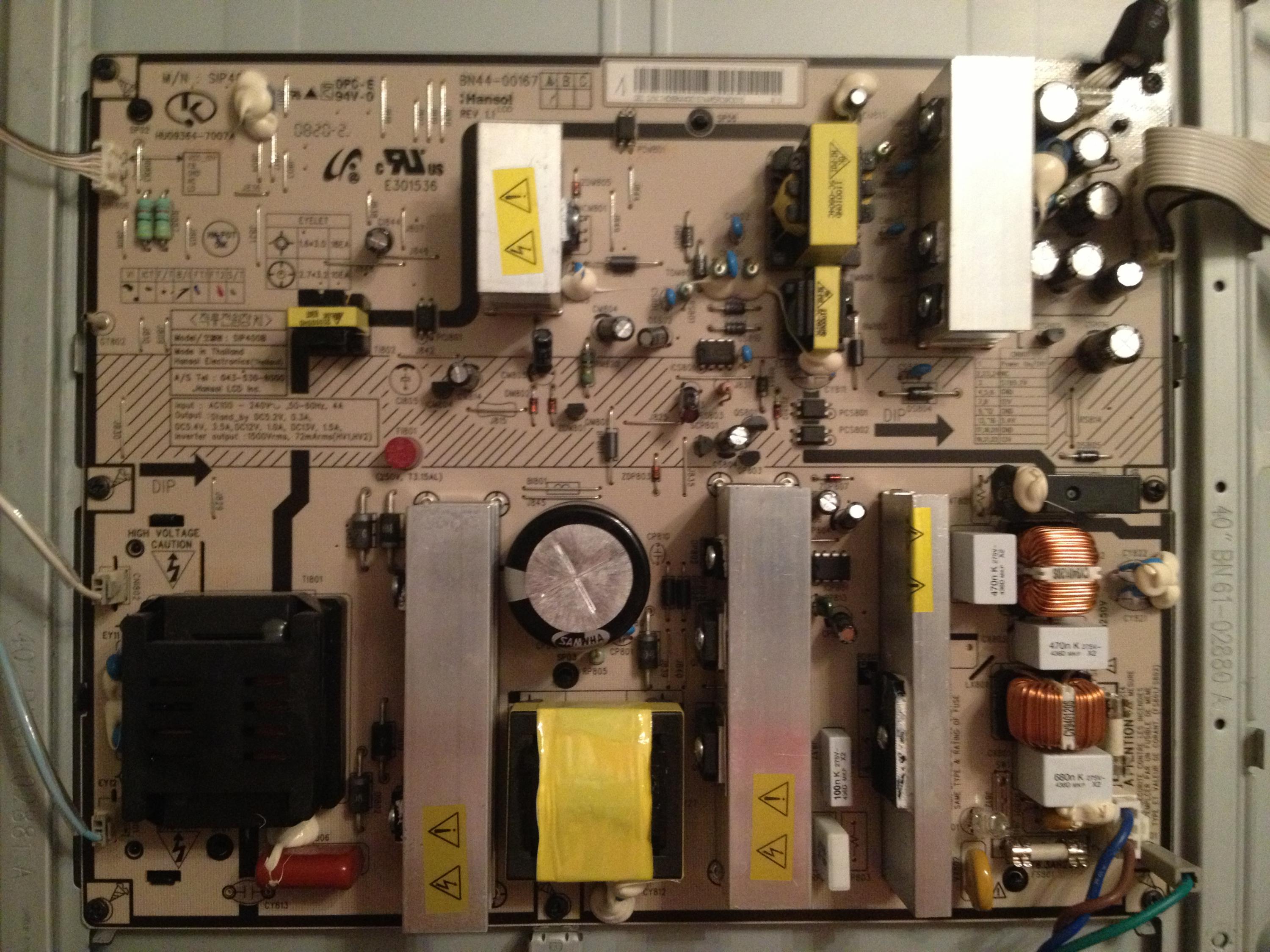 be careful working with power supply, HIGH VOLTAGE, on primary side, can be deadly, I'd check for expected voltages coming from power supply, should be a legend of expected voltages beside pins where connectors go.Is this thread being monitored any more? I have a very similar issue with my Samsung LNT4061, except I don't have the cycling issue or a faint picture. I have sound but NO picture at all, not even with a flashlight. The TV will appear to be powering on (it does the Samsung "noise/notes" upon pushing the on/off button) and I think it is, just no picture at all.