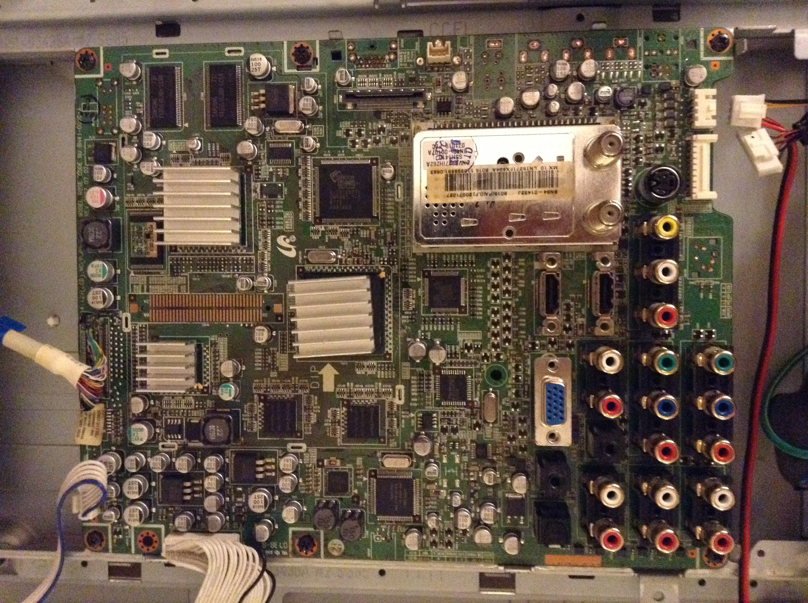 The main board has the video inputs on it. The t-con is at the top of the LCD panel and connects to the main board.Please do not PM me with questions! Questions via PM will not be answered. Post on the forums instead!