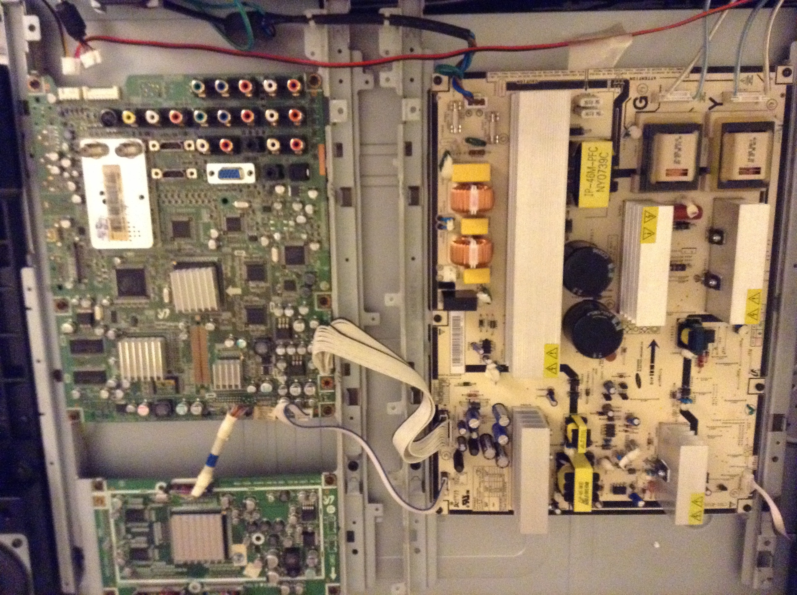 I have a 52" Samsung LCD, Model LNT5271FX/XAA that just last night started exhibiting a weird screen. The picture and audio still works but it looks like a negative image with bright colors. It happens on all inputs, even the on screen menu. I just finished fixing the capacitor problem with this set less than a year ago and now this. Any help diagnosing the problem would be greatly appreciated.