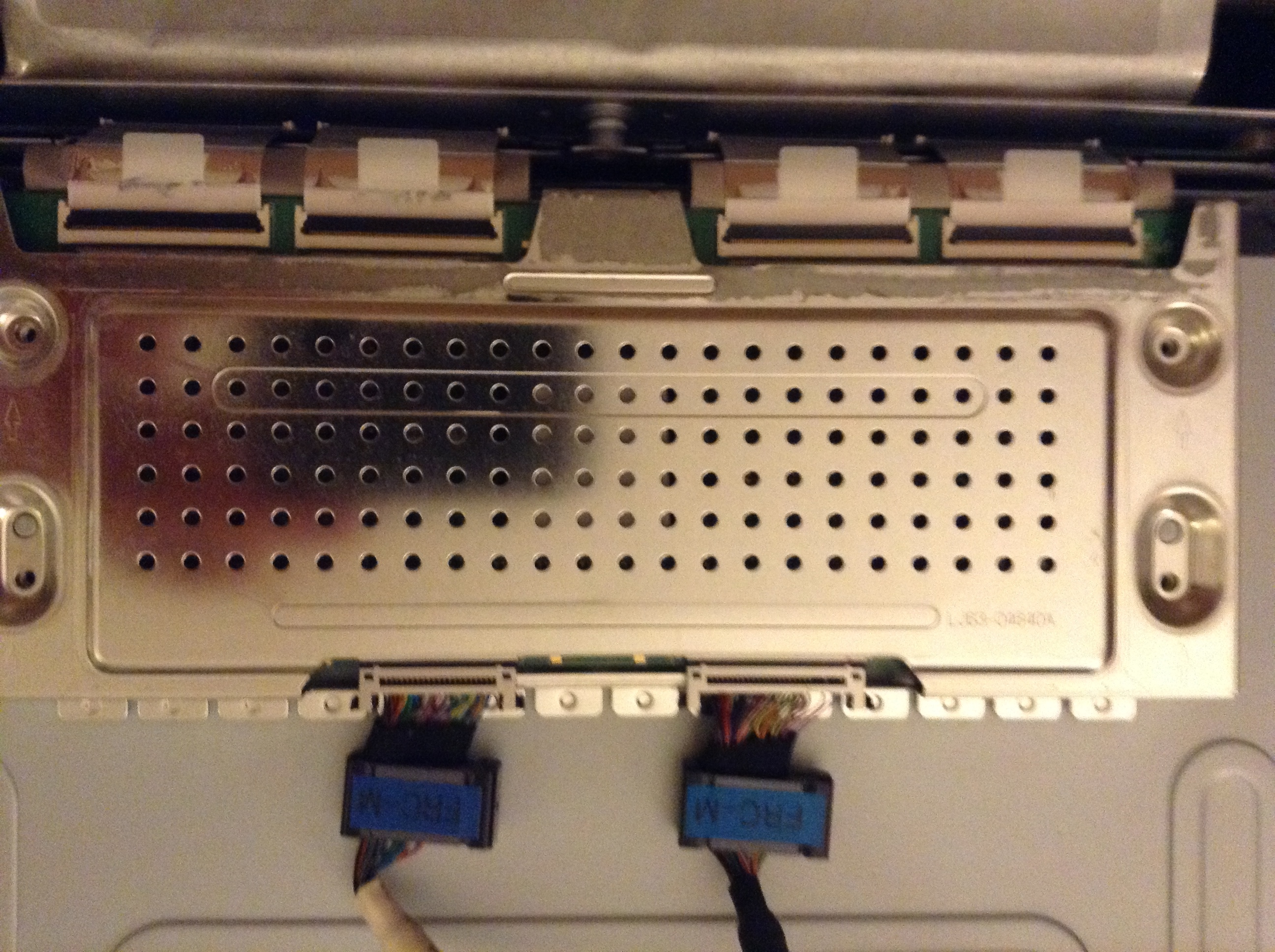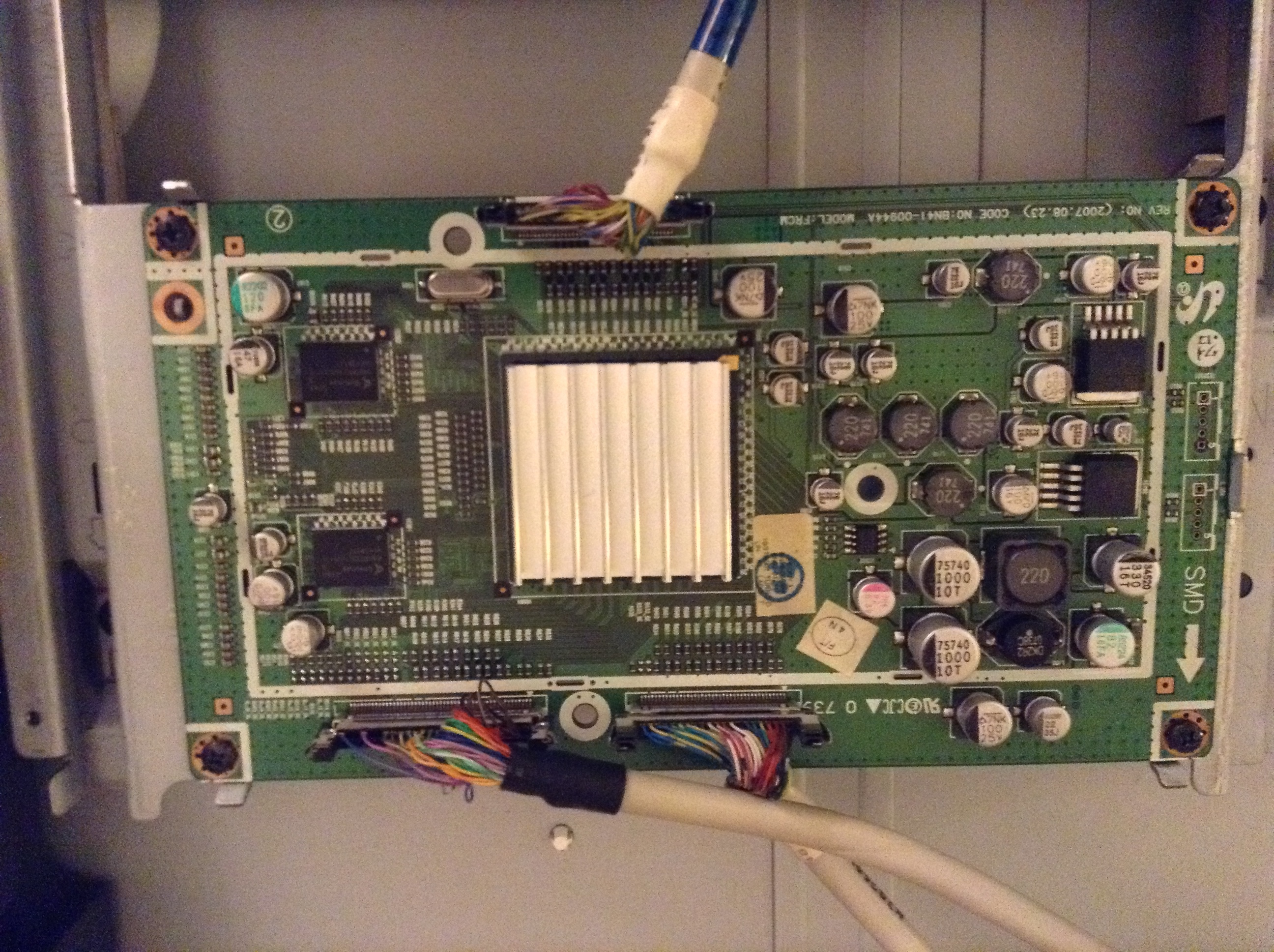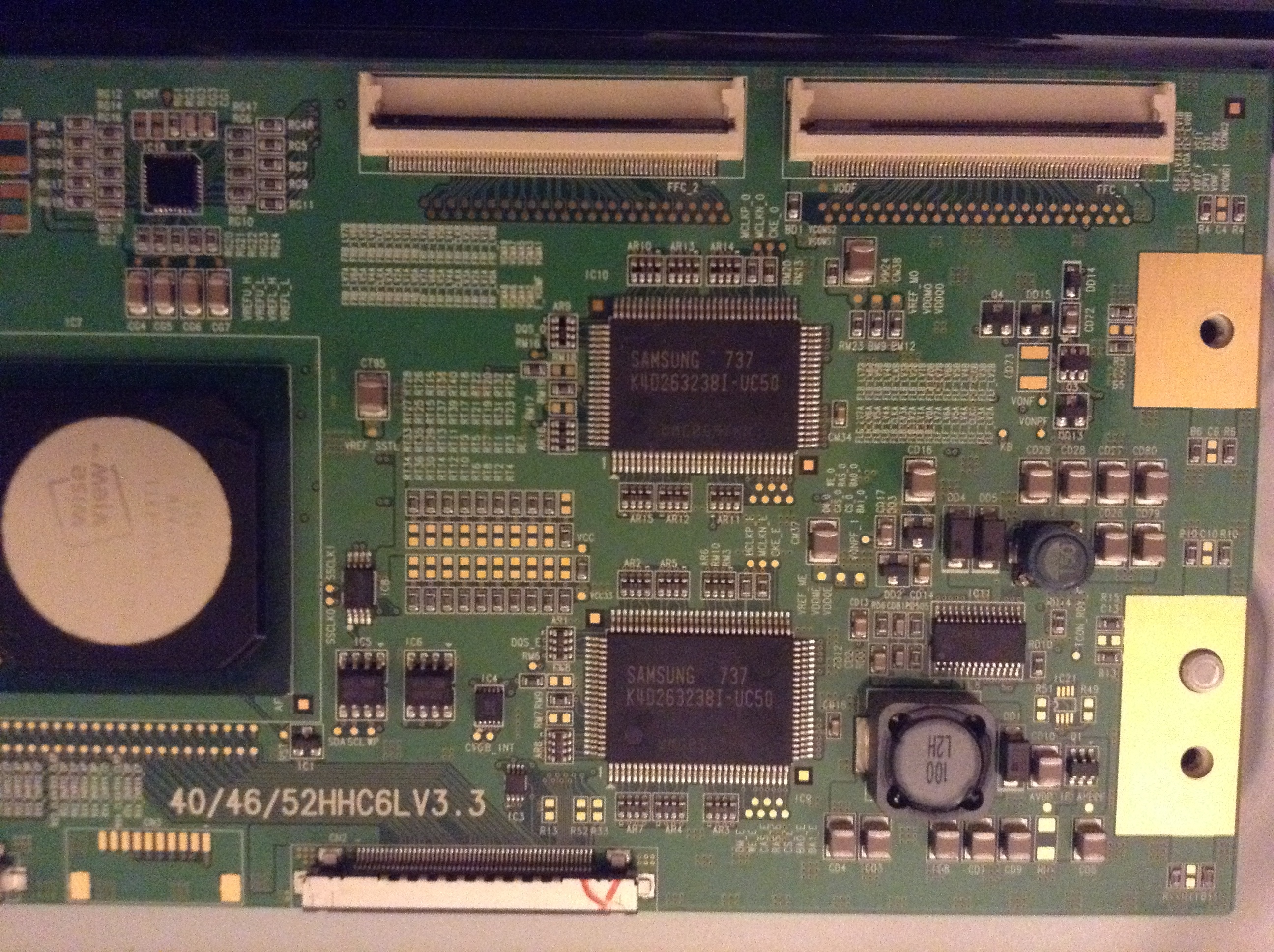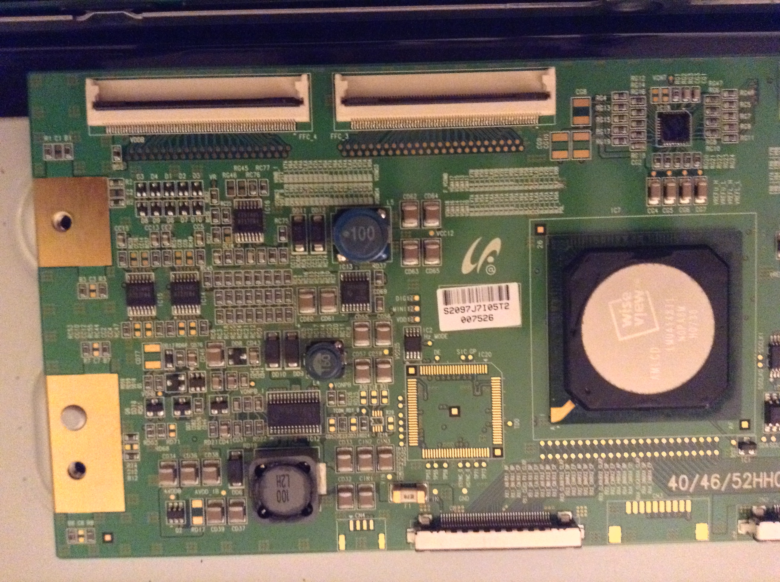 Here are the pics as requested. If someone can tell me how to get that shield off of the t-con I can get better pics of the board. I removed the tape but couldn't get it off.Attached Filesif you find these attachements useful please consider making a small donation to the site
