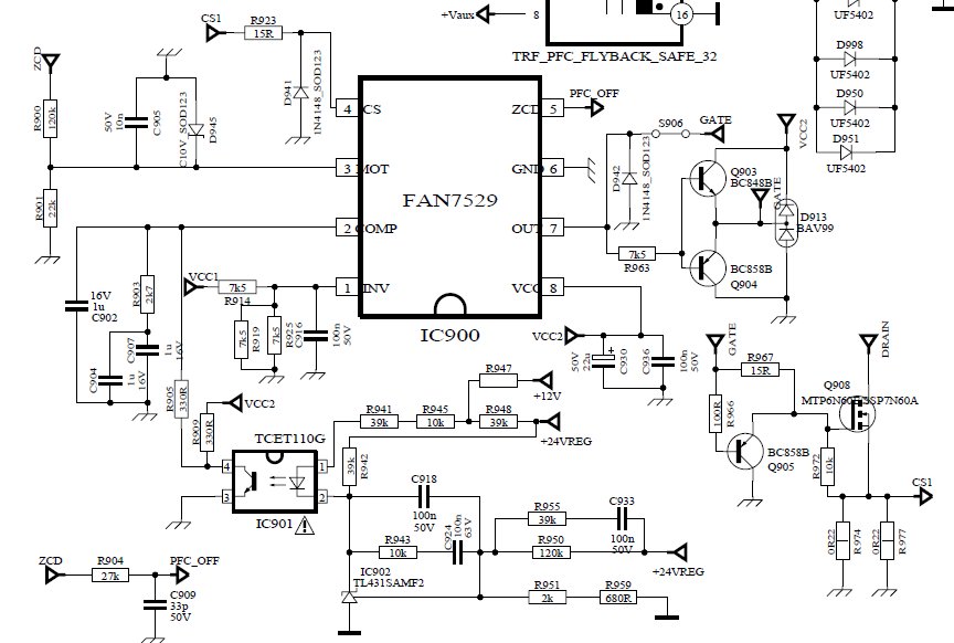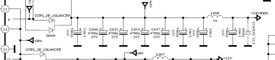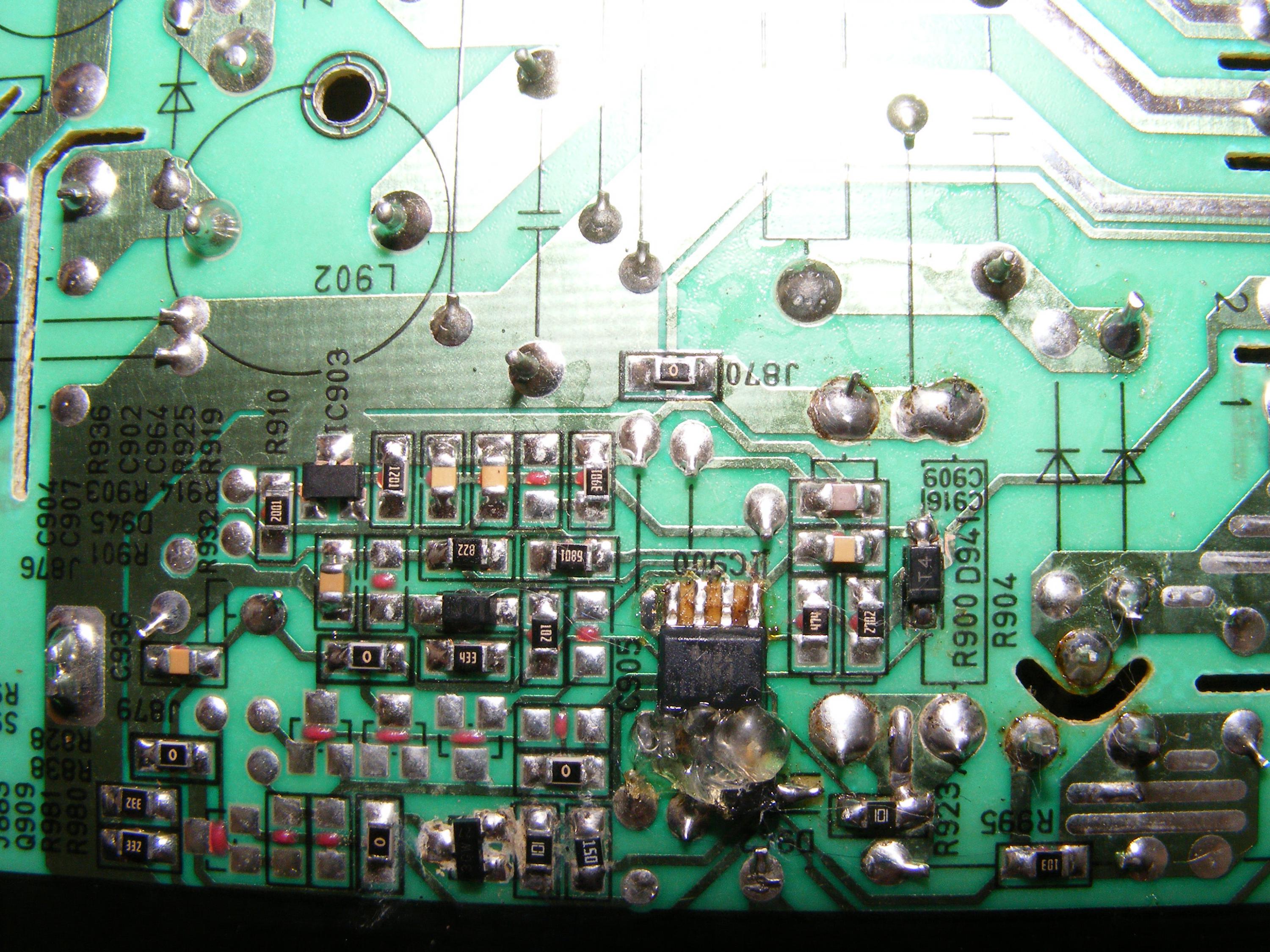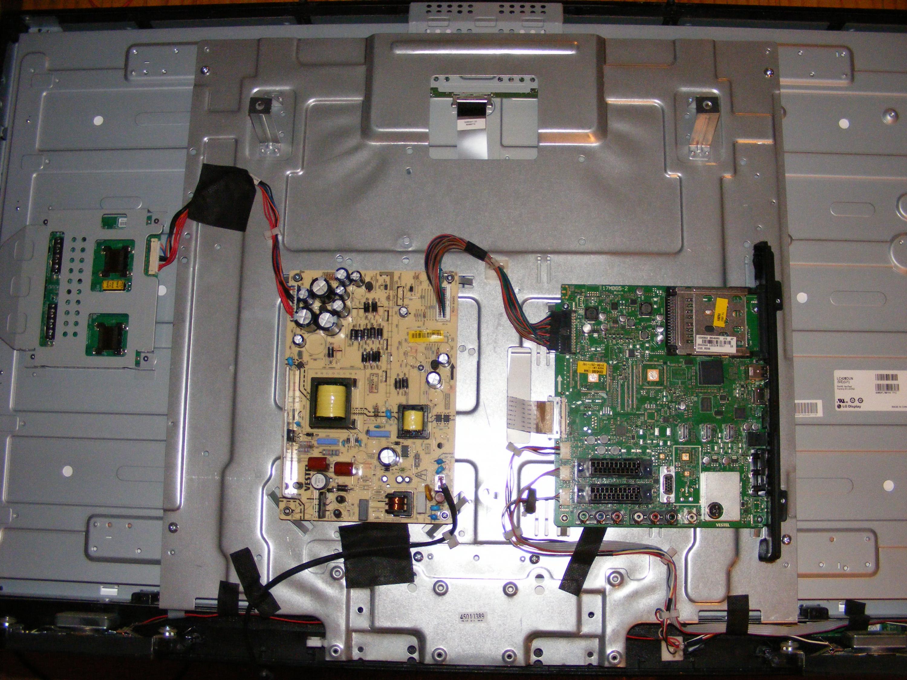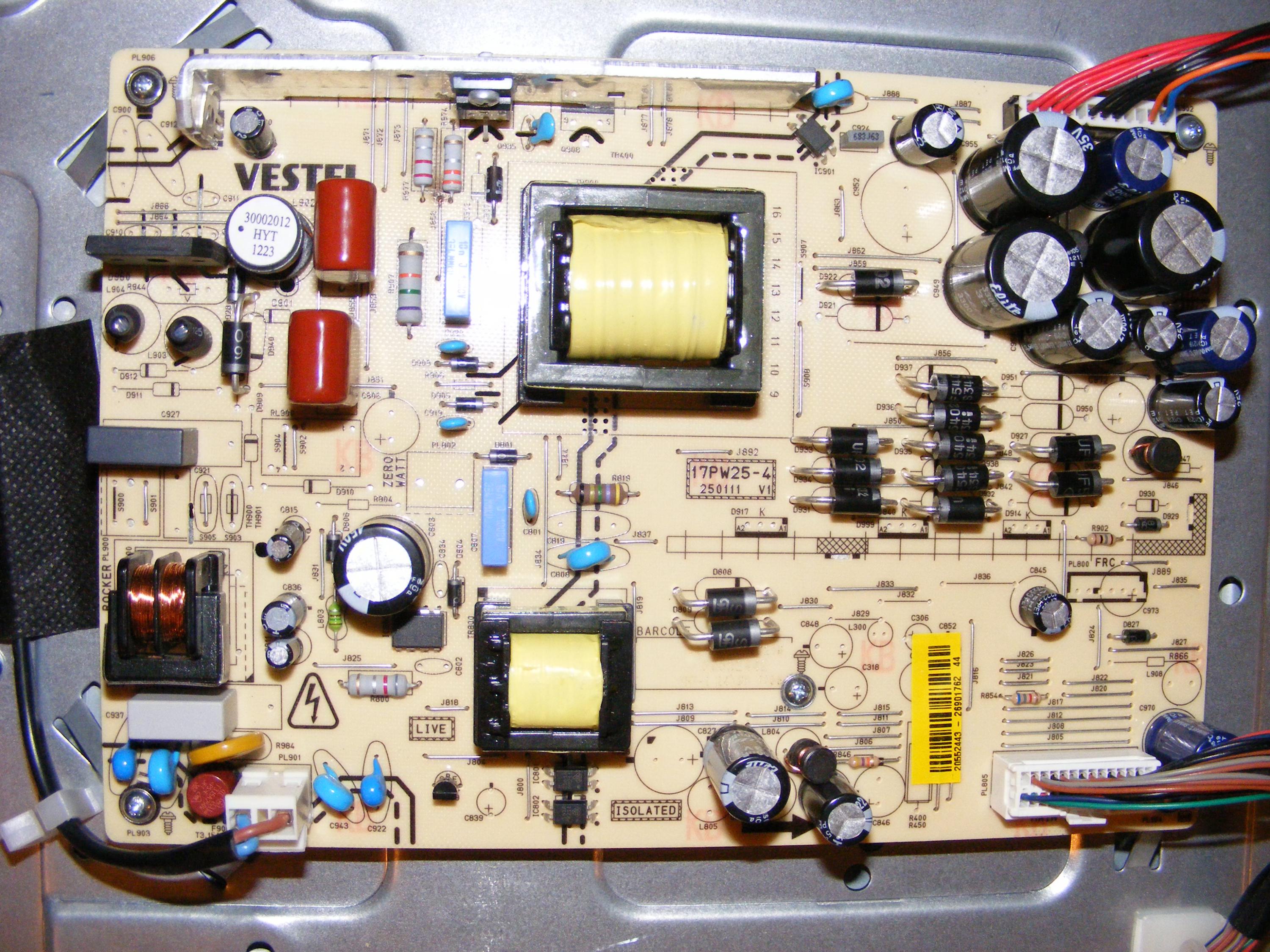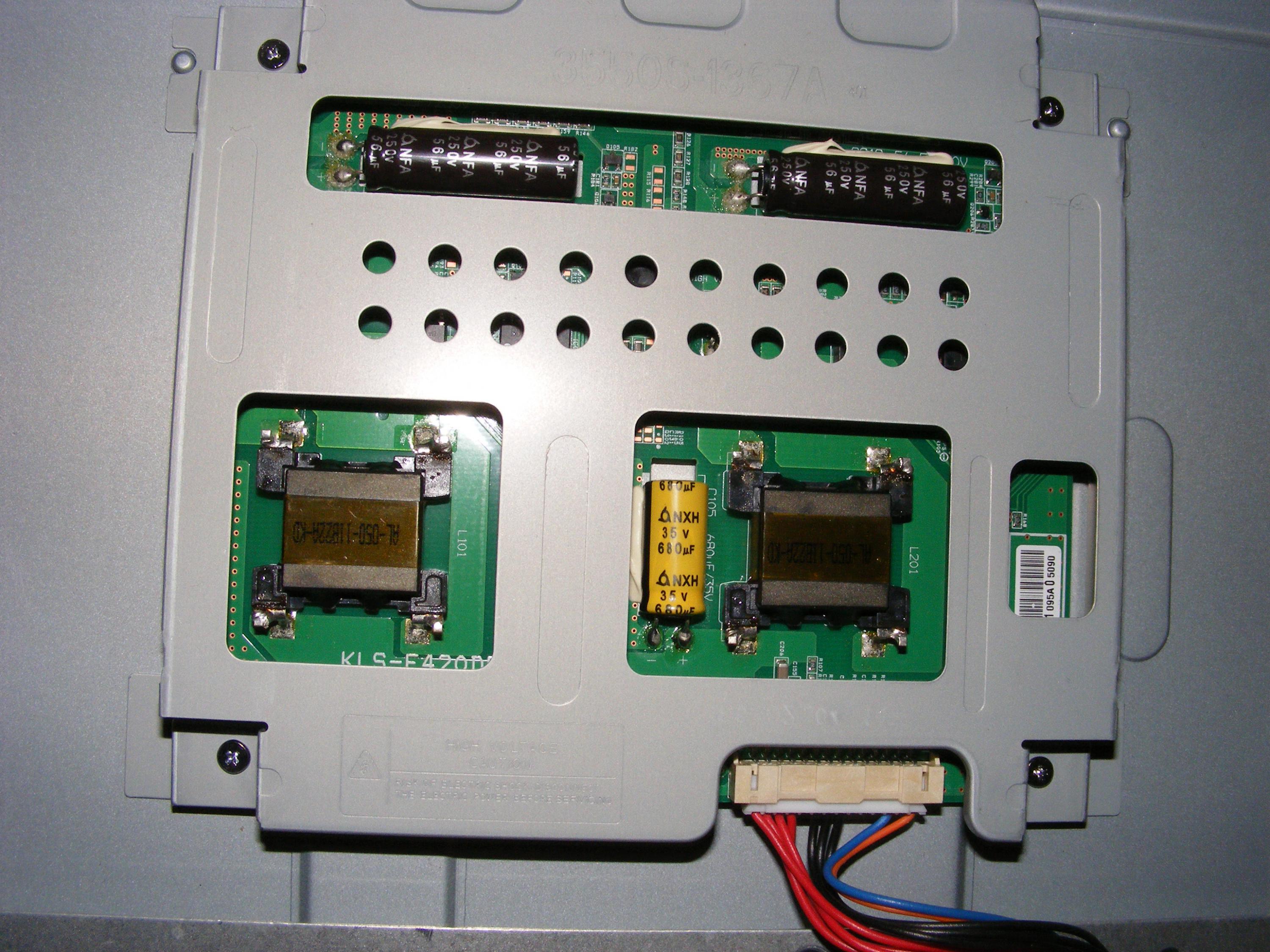 The TV is functioning and showing a picture, menus, etc.. but the backlight strobes on and off a lot on startup, and then intermittently after that. Turning up the BL brightness makes it flash constantly, turning it down makes it flash less and if it's dim it stays on. The +24 to the inverter board is steady until the BL lights up, but then drops out by a couple of Vs and fluctuates once the BL is flashing. My DMM doesn't really keep up though.