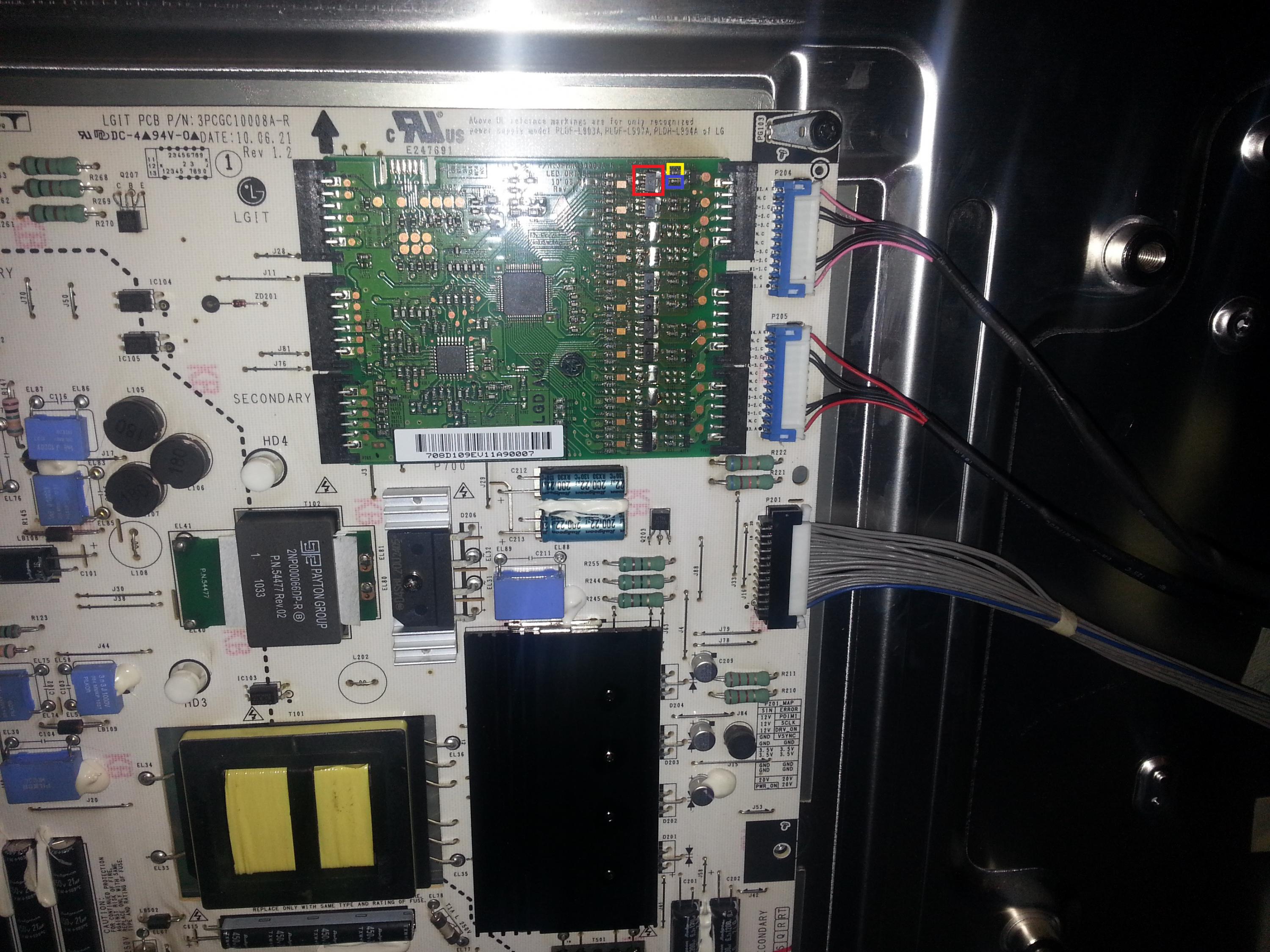 When the set is first turned on the back lights all light up and I read 12v going to them but then the voltage starts to rise and as soon as it hits 33v they cut out.