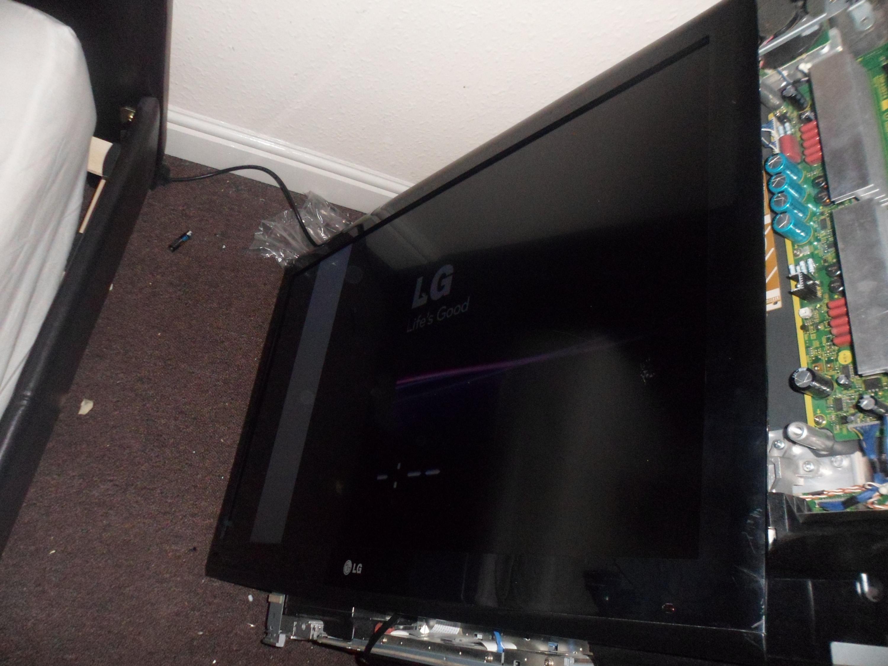 Proceeded to find L701 ferrite bead on main board to be open circuit, it feeds T-con power. (There was no voltage at t-con.)