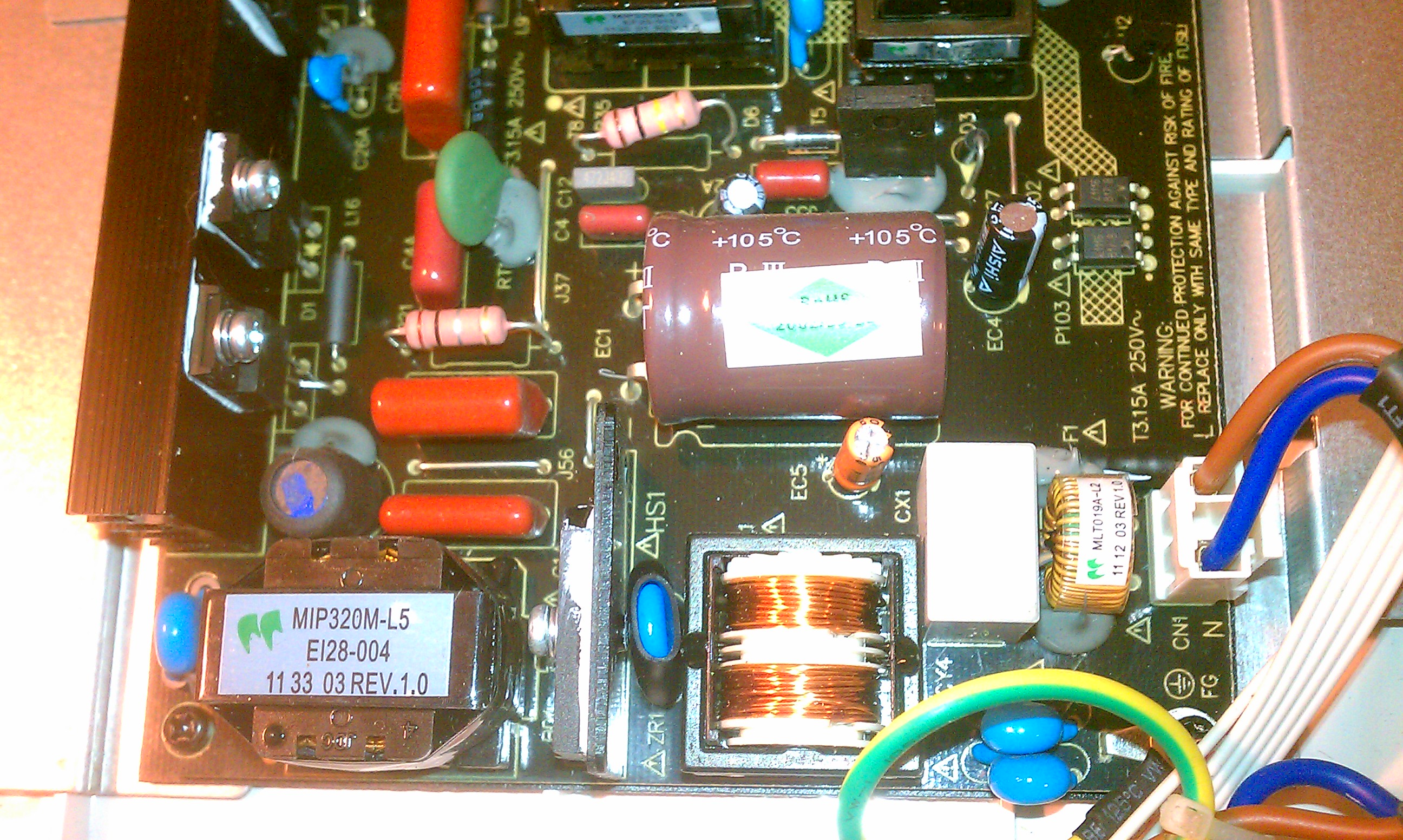 I saw the Big Cap and I knew I had one.. so I replaced it really quick.. Tried the TV again.. TV has been working for 2 hours now right next to me..