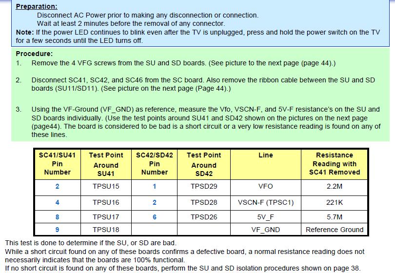 I had a 10 blink code on the TV and replace the P-board which gave me a 4 blink code. I disconnected the SC board and had a 7 blink code then reconnected the SC and disconnected the SS and had 4 blinks.