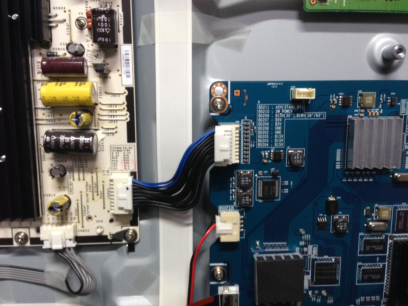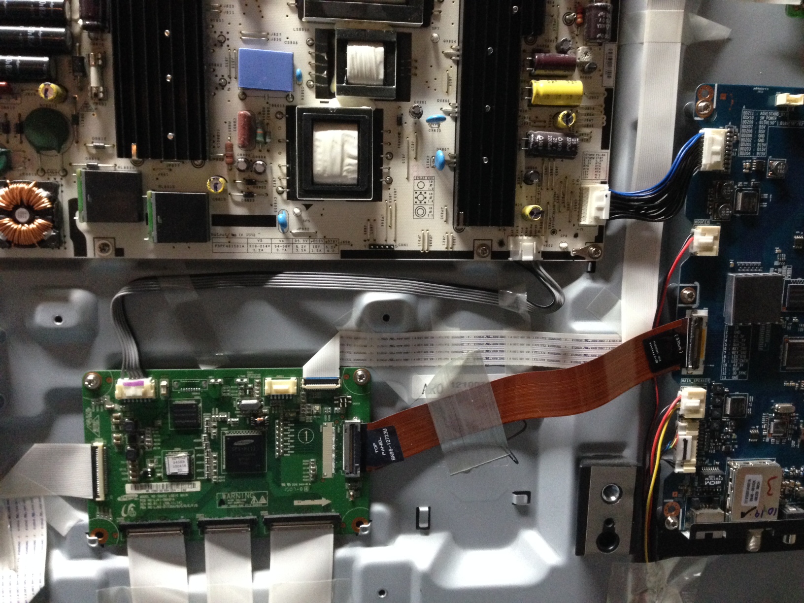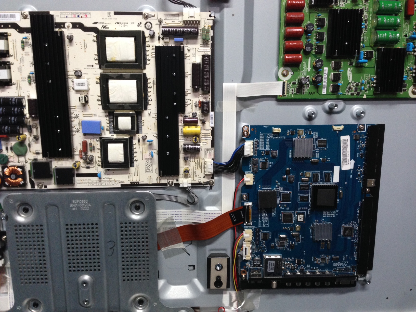 This is what it does currently: The minute I plug it in, with no remote or power input, it will attempt to turn on... I hear the click from the PCB, only to be followed by another click (also from the PCB), and a brief white flash on the screen before it turns off and repeats the process. Other posts have often pointed to a surge running through an HDMI, LAN, or cable input into the Main, and would like to somehow separate out the main from the rest of the system.