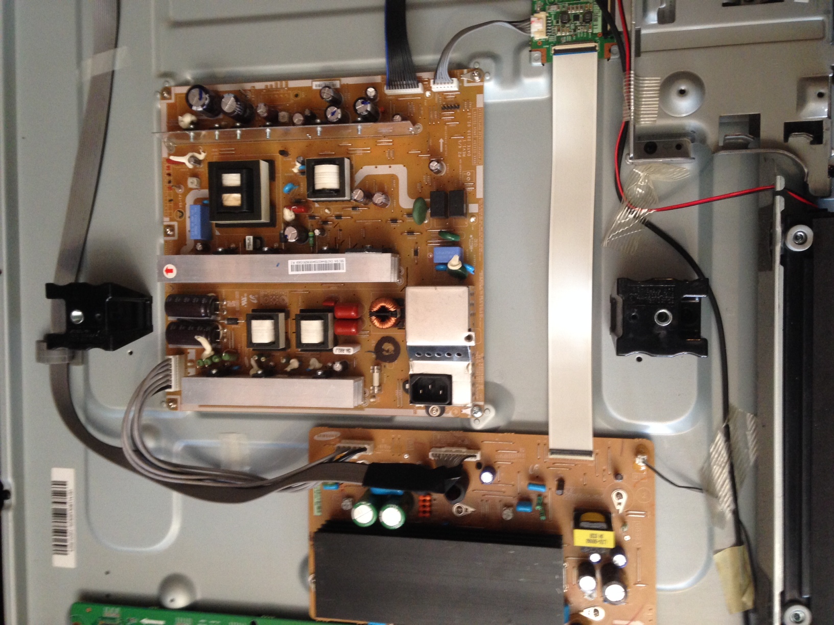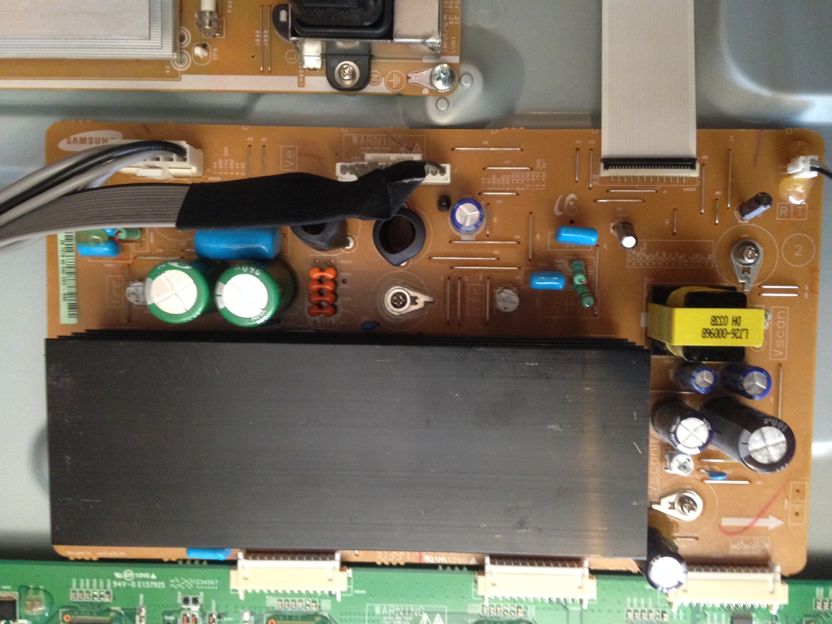 This may be one of those Samsungs in which you can test for shorts in the components on the heat sinks and quickly find your problem boards: https://www.badcaps.net/forum/showth...t=ns-50p650a11