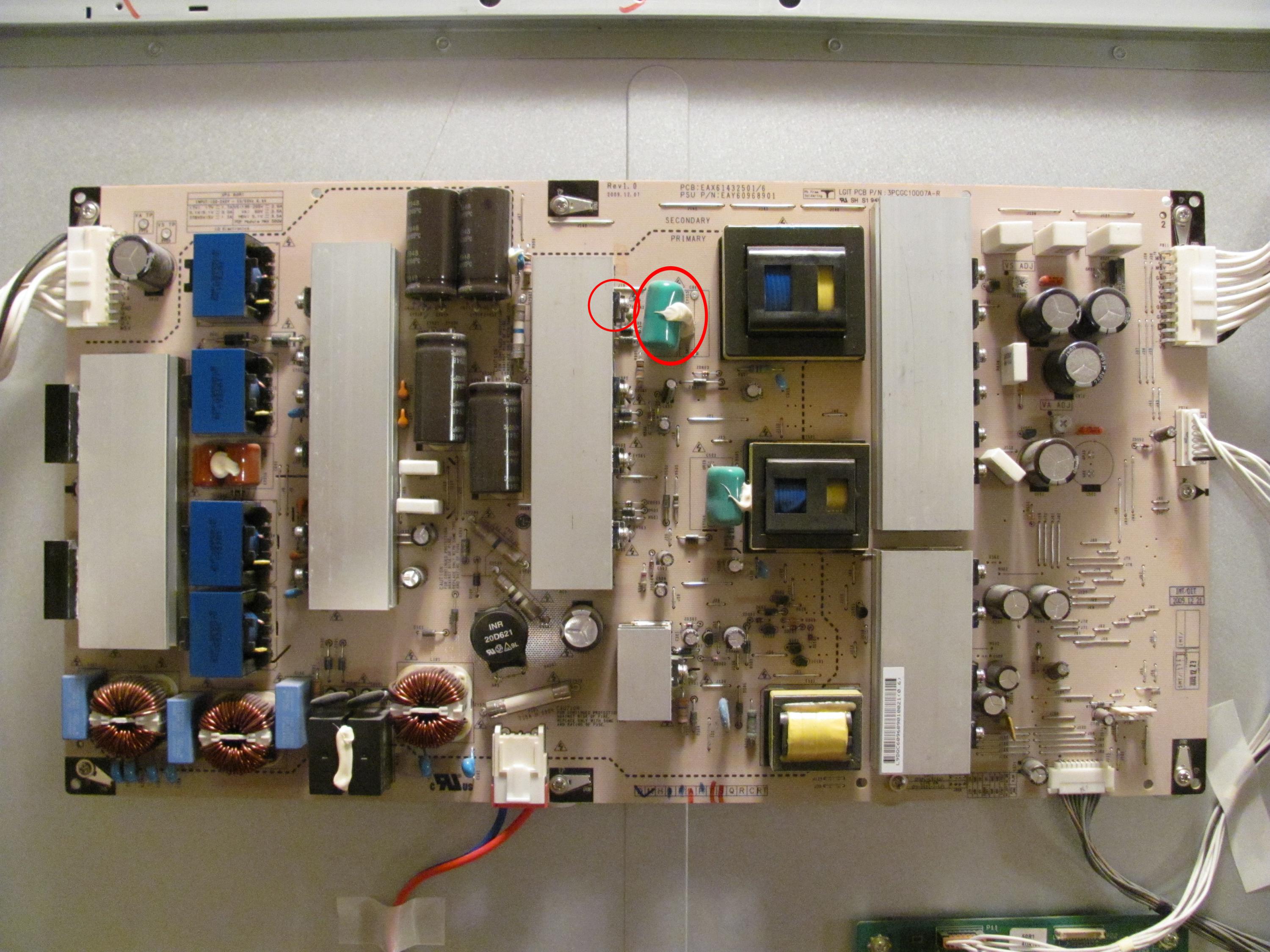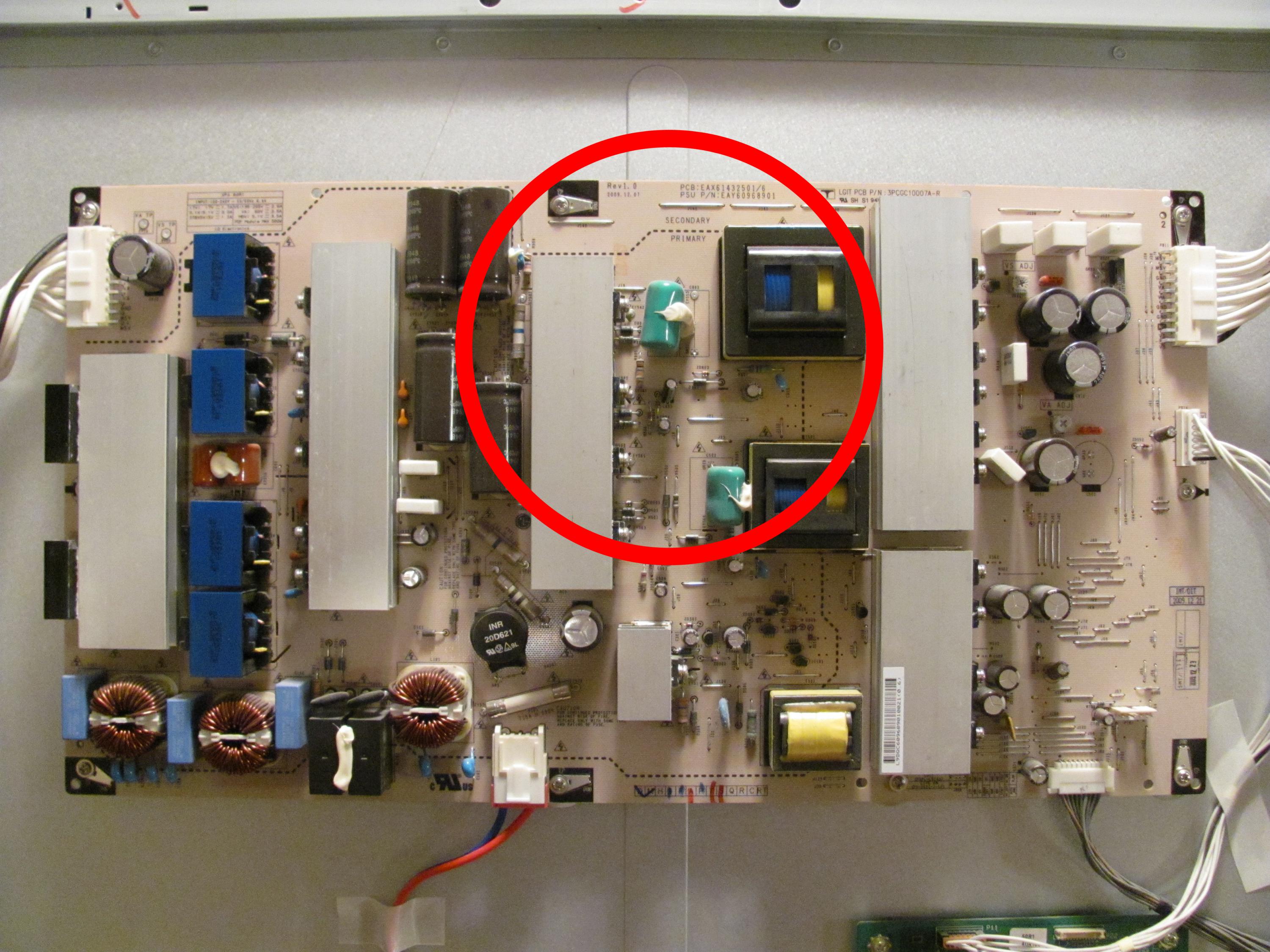 At this point I'm ready to start replacing components on the main board to try to fix this if need be. I listened for where the ticking was coming from and I have uploaded a picture of the power board with a red circle around the area I believe it to be coming from. I listened as close as I could, without risking touching the board with my ear. Could you imagine that? several hundred volts straight to the ear? That would not be a good time. I digress.