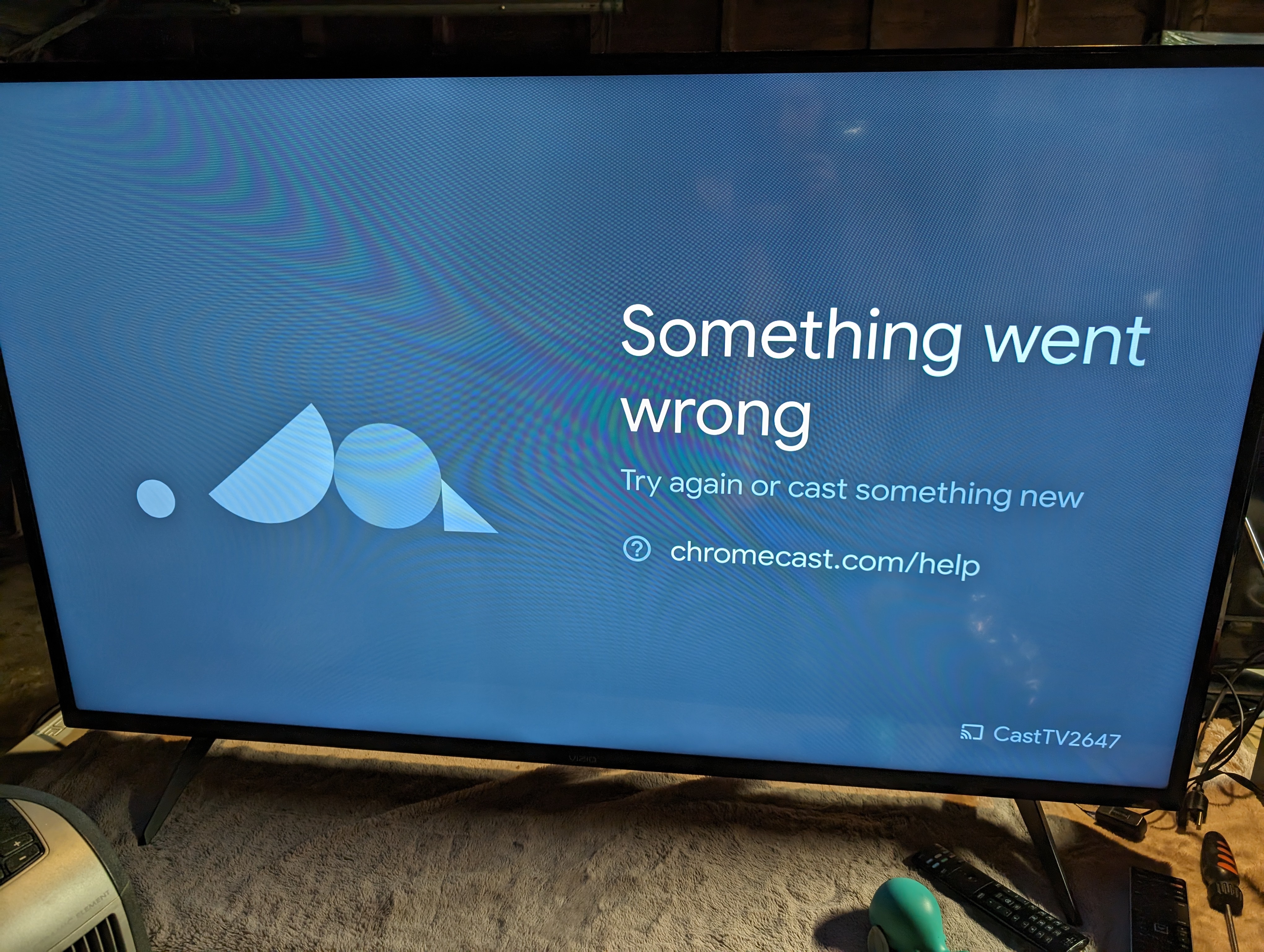 I just got this tv today and it's getting stuck on the wallpaper. When I first power it on it goes to the V logo, then a black screen for about 15 seconds, then a Chromecast error for just a few seconds, and then finally to a wallpaper. It stays frozen on this wallpaper and does not respond to anything on the remote besides power on/off. Likewise the buttons on the tv do nothing either (besides power). I did the "reset" by holding the volume down and input buttons together for 10 seconds. It showed a message at the top of the screen saying it was Wiping Data and would restart soon. After it restarted it went right back to the same error and then frozen wallpaper.