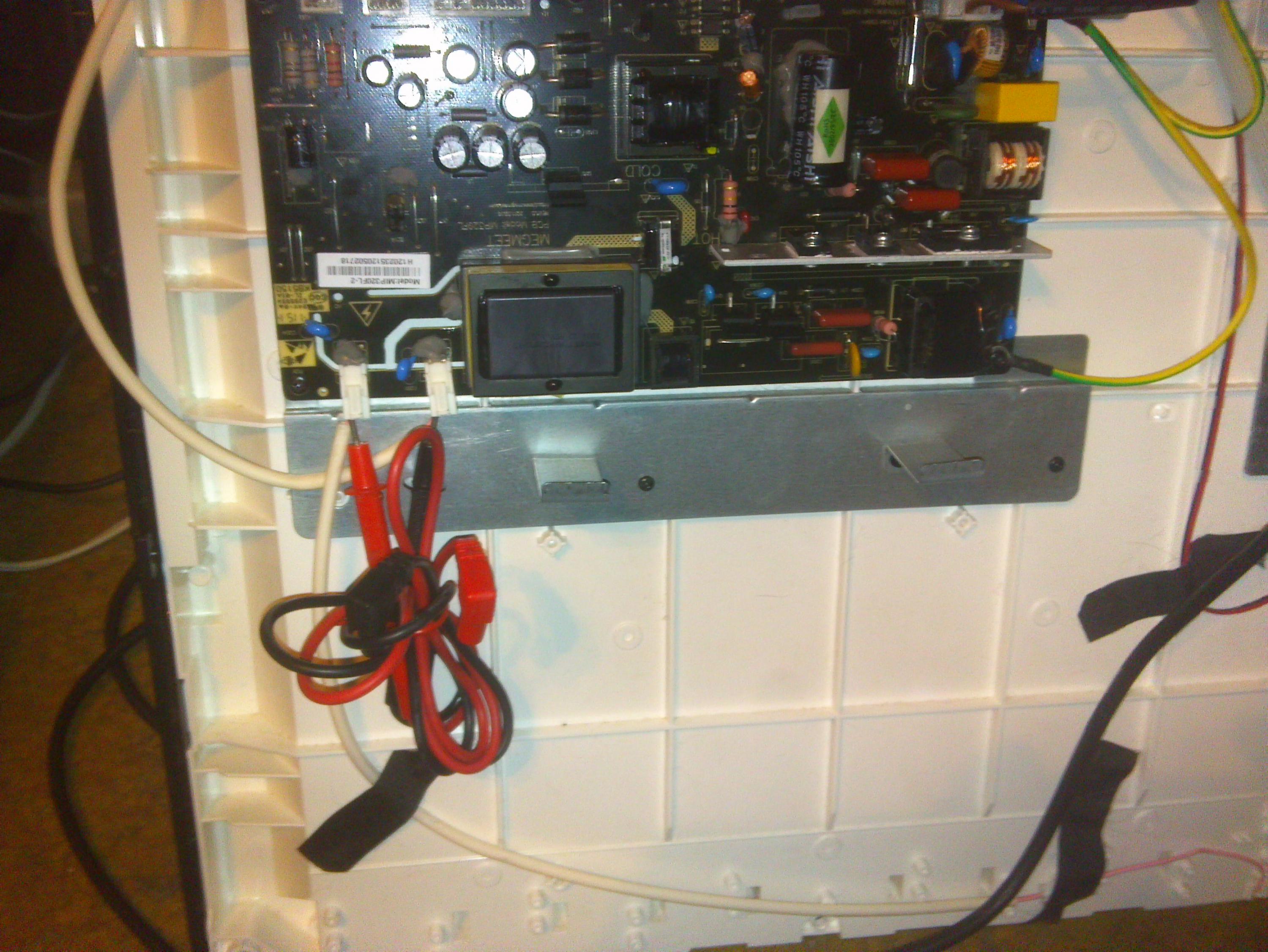 this is a jerry rig fire waiting to happen i just did it to show that if i stick 2 probes in the connectors for the backlights that they now work. but what would cause it to do that?
