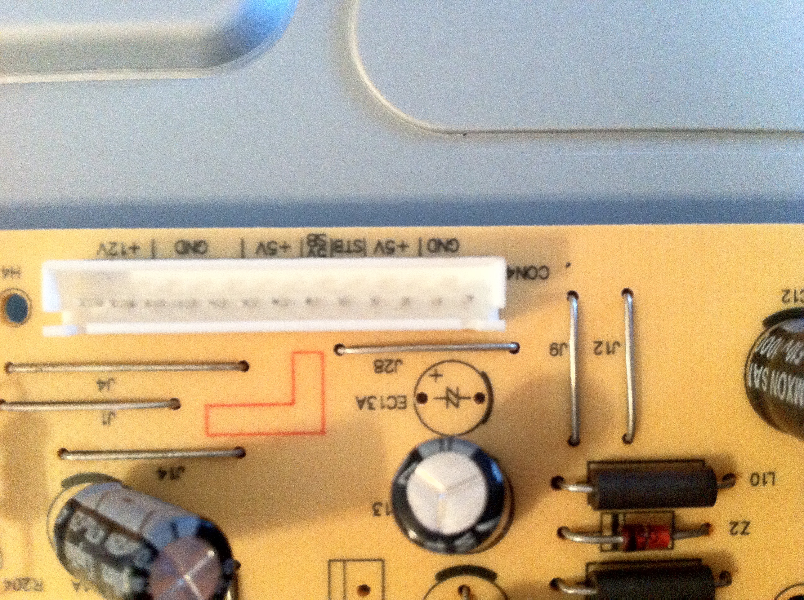 So what should I look for or test?I tried to find anything labeled ps/on and tried pressing the power on and testing each wire but no change in volts?